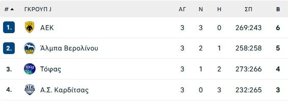 Άλμπα Βερολίνου (Κάλες): Ο’Κόνελ 1, Γκρίζελ 10, Ντέλοου 8 (11 ριμπάουντ, 3 ασίστ), Καγίλ 20 (2/3 δίποντα, 3/7 τρίποντα, 5 ριμπάουντ, 3 ασίστ), Μάτισεκ 3, Γουντ 4, Ρόμπερτς 6, Εχόντας, Χέρμανσον 11 (3/4 δίποντα, 1/1 τρίποντο), Αγκμπακοκό 7, Χουντ, Μπιν 14 (3/3 δίποντα, 1/4 τρίποντα).