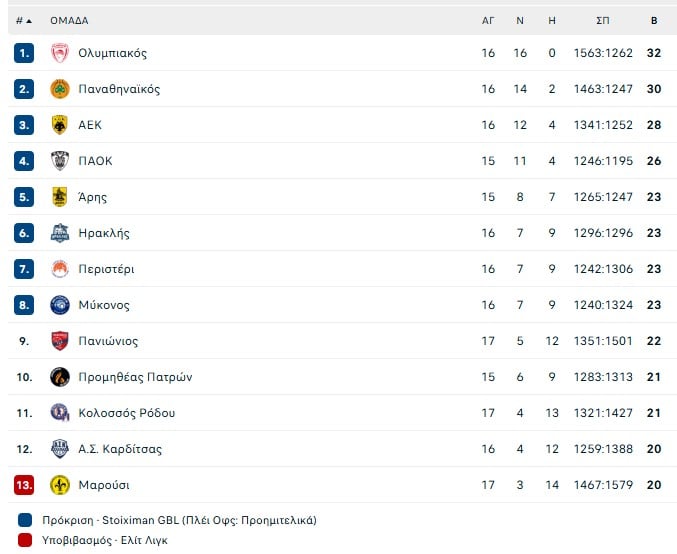 Μαρούσι: 17/32 δίποντα, 9/30 τρίποντα, 13/16 βολές, 30 ριμπάουντ (23 αμυντικά/7 επιθετικά), 17 ασίστ, 7 κλεψίματα, 1 μπλοκ, 9 λάθη, 25 φάουλ.