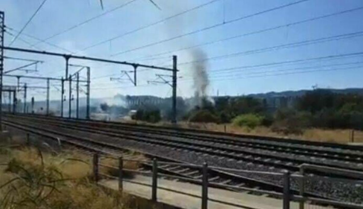 Μικρής έκτασης φωτιά που ξέσπασε στους Αγίους Θεοδώρους, είχε ως αποτέλεσμα την προσωρινή διακοπή της κίνησης για τις αμαξοστοιχίες του Προαστιακού.