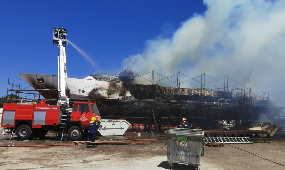 Σύρος: Καταστροφική φωτιά σε θαλαμηγό στο ναυπηγείο του Ταρσανά (video)