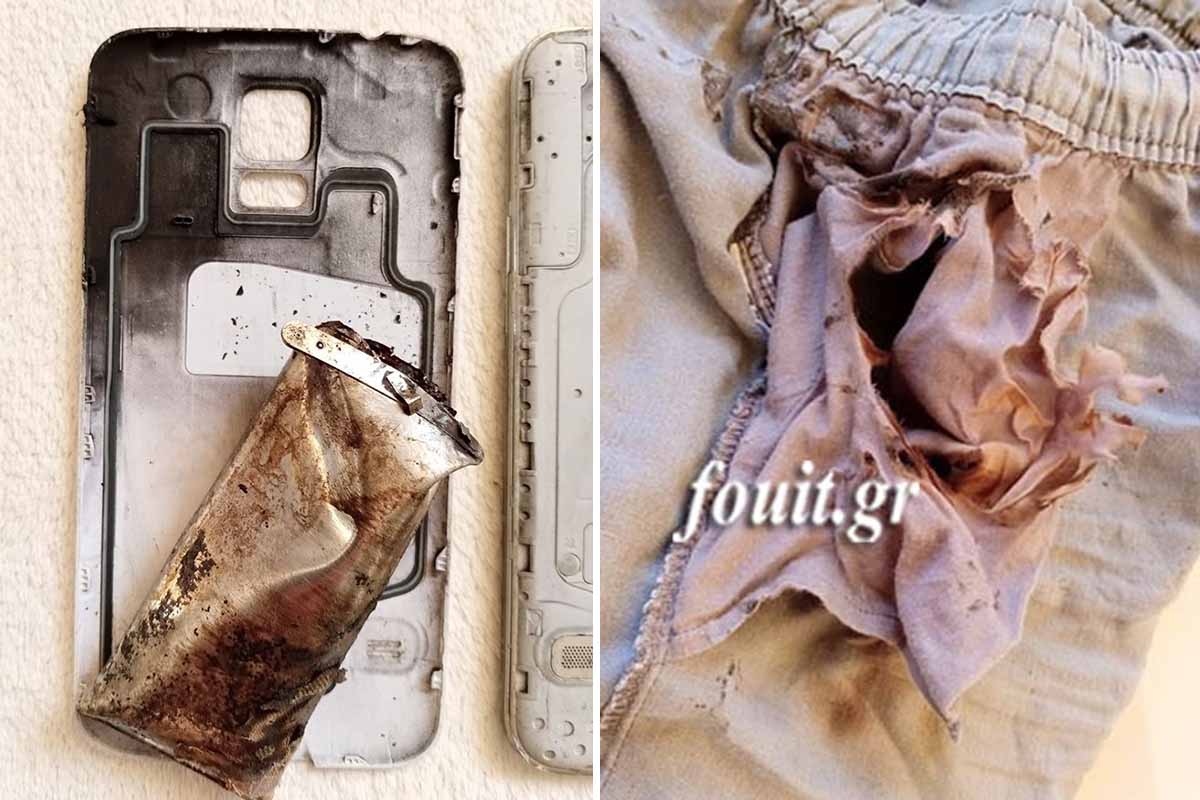 Οι φλόγες που ξεπήδησαν από το κινητό έκαψαν τα ρούχα του ενώ φωτιά άρπαξε μέχρι και ο καναπές! Το ζευγάρι χωρίς να χάσει την ψυχραιμία του, κατάφερε να σβήσει τη φωτιά και από θαύμα δεν τραυματίστηκε.
