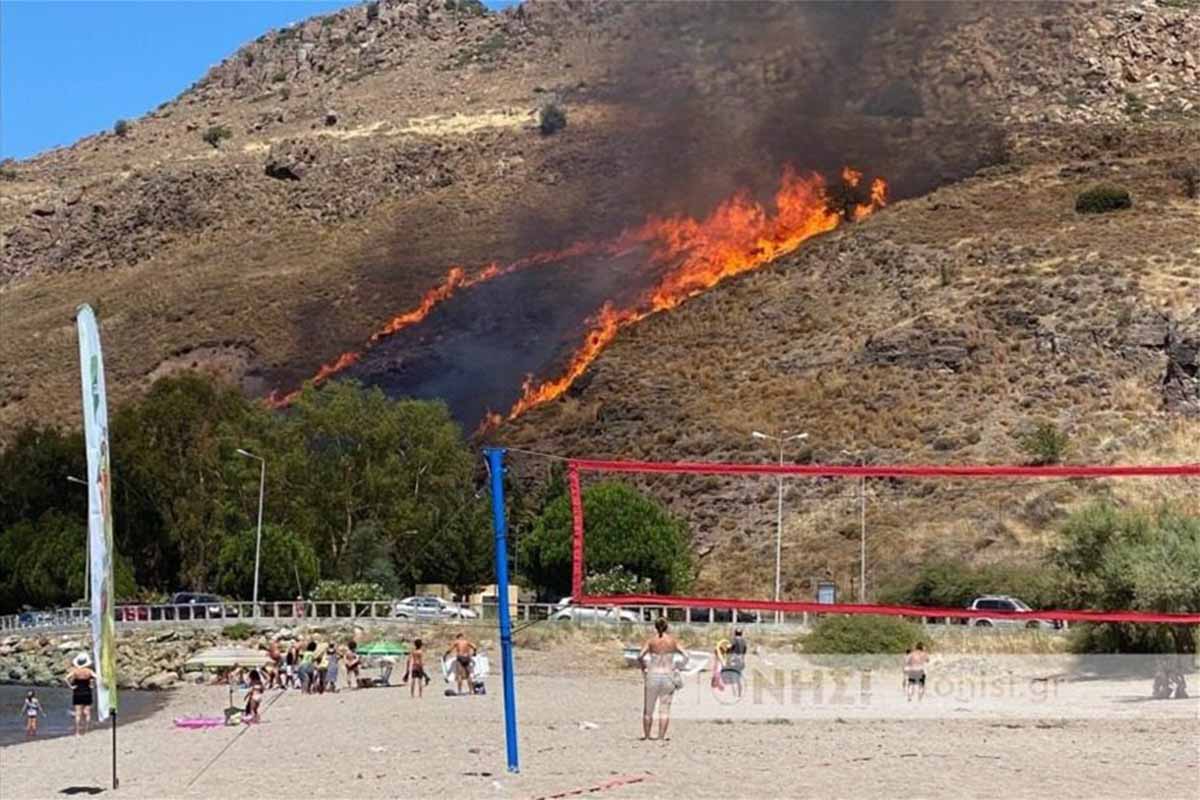 Μια ανάσα από τους παραθεριστές η φωτιά στη Μυτιλήνη! Απείλησε σπίτια και ξενοδοχεία (video)