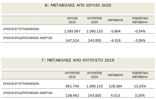 Δείτε τα στατιστικά στοιχεία του ΟΑΕΔ για τον Αύγουστο του 2020: