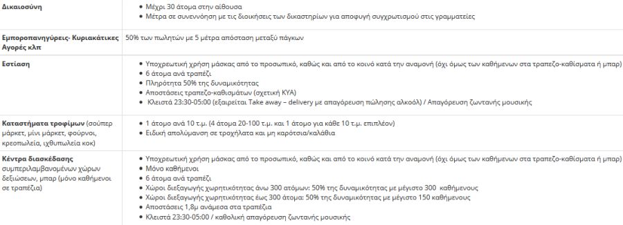 - Ανοικτά λιανεμπόριο, χονδρεμπόριο, σχολεία, ανοιχτοί αρχαιολογικοί χώροι, ξενοδοχεία, βιομηχανία, κομμωτήρια