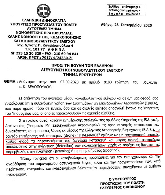 Τι αποκαλύπτει αυτή η επιστολή μετά από ενημέρωση της ΕΛΑΣ (Υπηρεσία Μη Στελεχωμένων Αεροσκαφών).