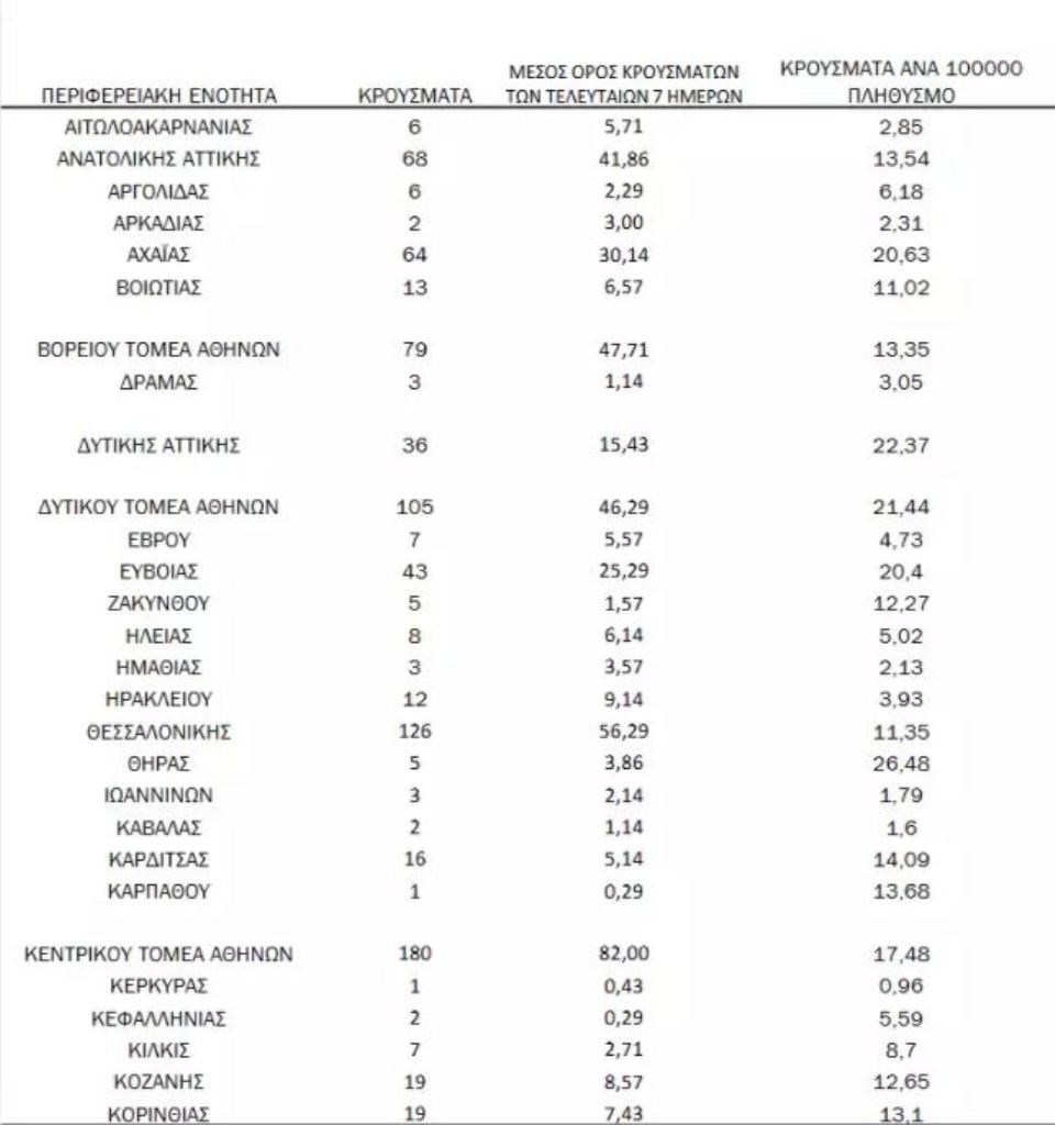 Δείτε αναλυτικά την κατανομή των κρουσμάτων ανά περιφέρεια, σύμφωνα με τα στοιχεία του ΕΟΔΥ: