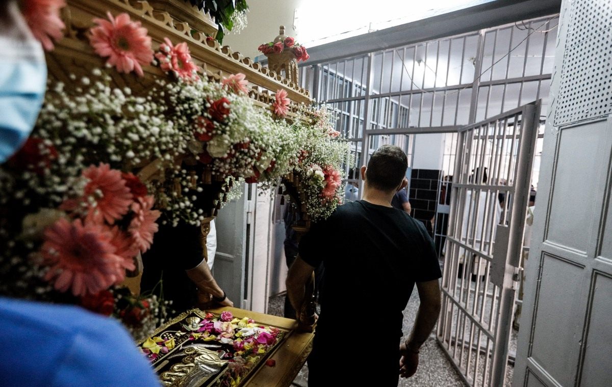 - Δείτε χαρακτηριστικές φωτογραφίες από την προετοιμασία του Επιταφίου και την περιφορά του εντός των φυλακών: