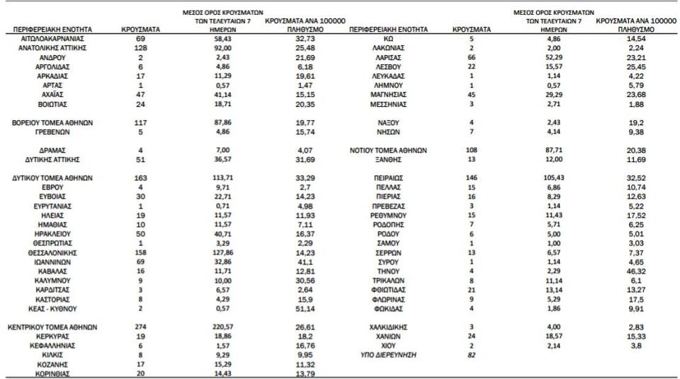 - Αναλυτικά τα νέα κρούσματα ανά περιφέρεια, σύμφωνα με τα στοιχεία του ΕΟΔΥ: