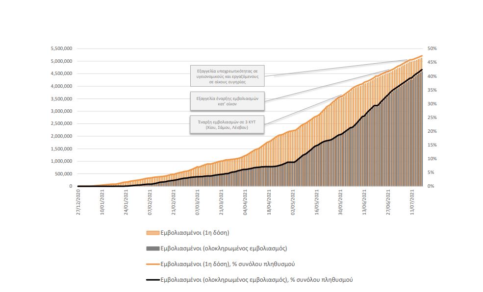 Διάγραμμα 1: Εξέλιξη εμβολιαστικού προγράμματος εναντίον της COVID-19 (Ελλάδα, Δεκ 2020 – Ιουλ 2021)|