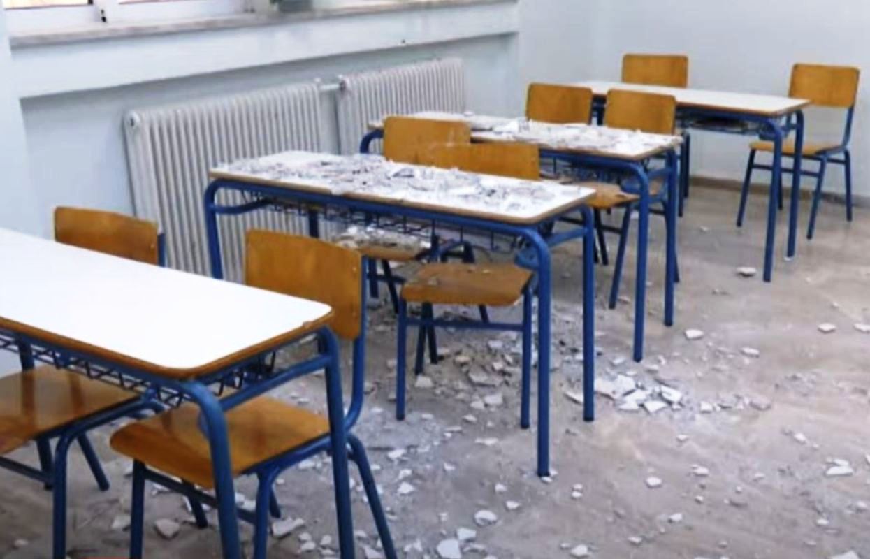 Νέο περιστατικό πτώσης σοβάδων σε σχολική αίθουσα σημειώθηκε σήμερα, με θρανία τάξης του λυκείου της Καλαμάτας να «θάβονται» κάτω από τα θραύσματα της οροφής.