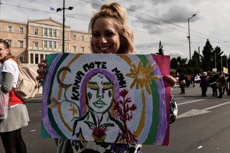 Συγκέντρωση στην πλατεία Κλαυθμώνος και πορεία μέχρι την Βουλή, που ολοκληρώθηκε γύρω στις 15.00, πραγματοποιήθηκε για την 8η Μάρτη, Παγκόσμια Ημέρα των Γυναικών.
