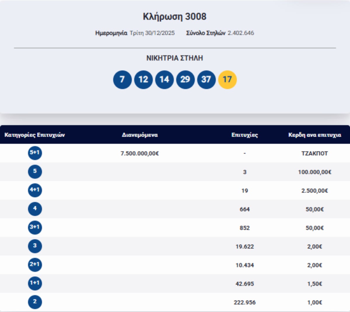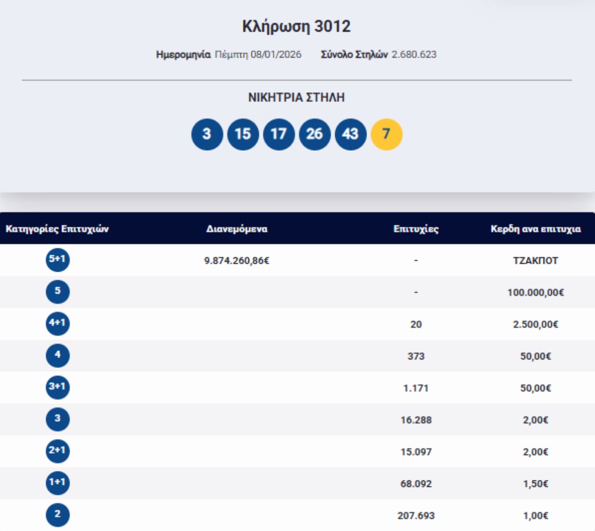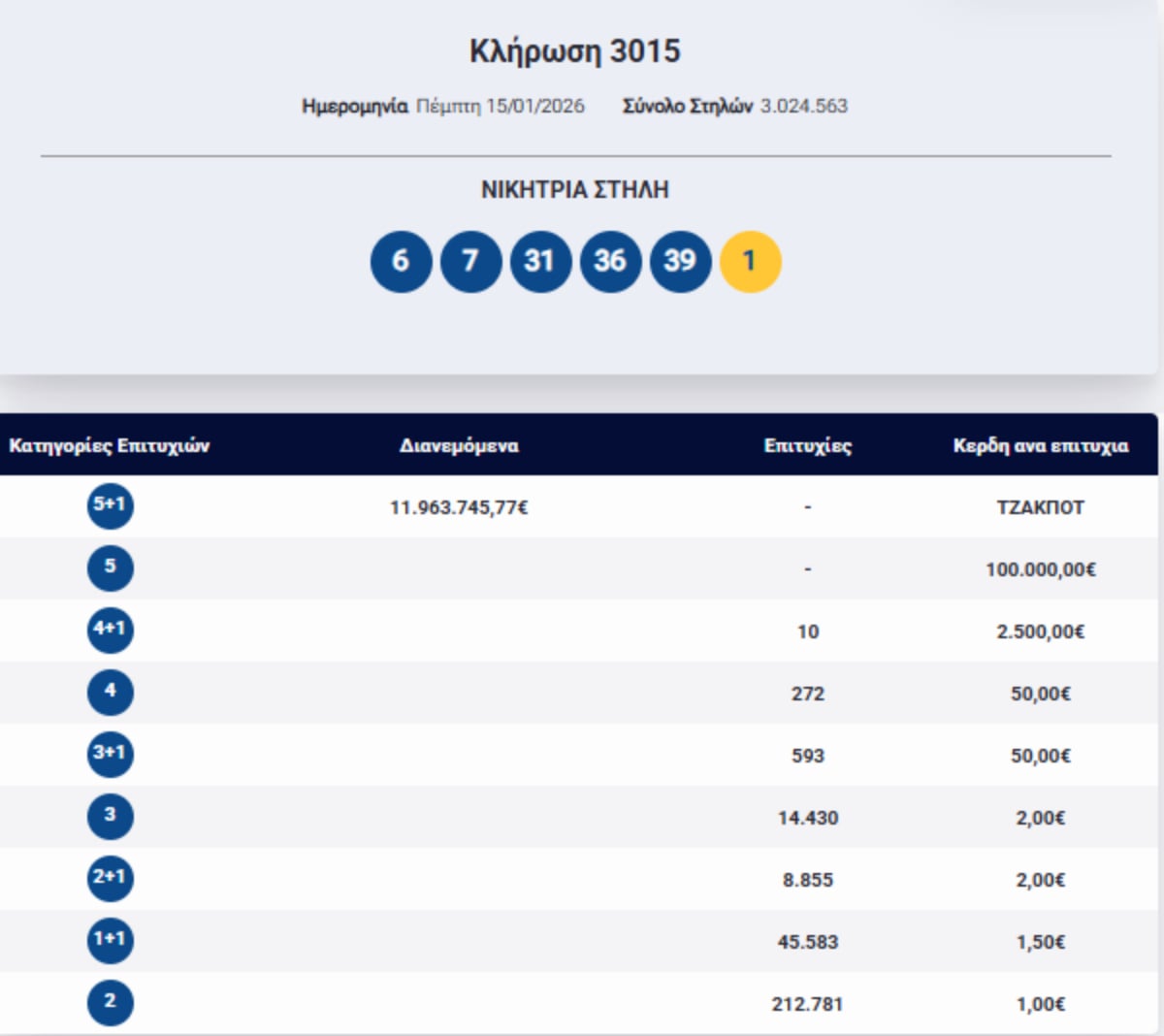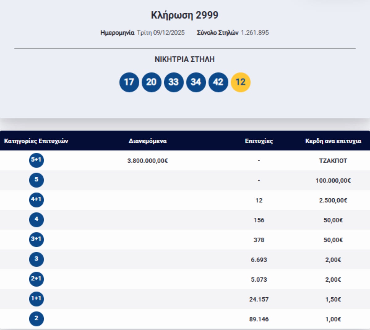 - Δείτε τον αναλυτικό πίνακα με το ποσά που μοιράζονται σήμερα στους νικητές ανά κατηγορία