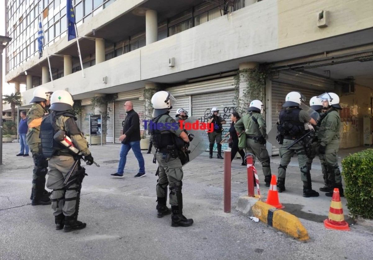 Σύμφωνα με το ThessToday, συγκεντρωμένοι φοιτητές διαμαρτύρονταν για το περιστατικό μπροστά από την Πρυτανεία του ΑΠΘ, όταν ορισμένοι από αυτούς άρχισαν να πετάνε πέτρες προς τις δυνάμεις των ΜΑΤ, οι οποίες απάντησαν, κλασικά, με ρίψεις κρότου λάμψης.