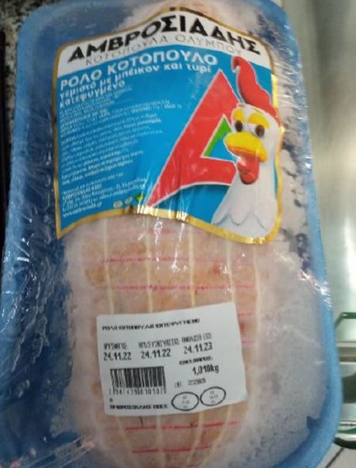 Σε ανακοίνωσή του ο ΕΦΕΤ αναφέρει πως η Περιφερειακή Διεύθυνση Ηπείρου, κατά τη διενέργεια ελέγχων προέβη σε δειγματοληψία παρασκεύασματος κρέατος, με τα στοιχεία «ΑΜΒΡΟΣΙΑΔΗΣ – ΡΟΛΟ ΚΟΤΟΠΟΥΛΟ γεμιστό με μπέικον και τυρί κατεψυγμένο», με ημερομηνία σφαγής και συσκευασίας 24-11-22 και ανάλωση έως 24-11-23, που παράγεται από την εταιρεία ΑΜΒΡΟΣΙΑΔΗΣ ΑΒΕΕ.