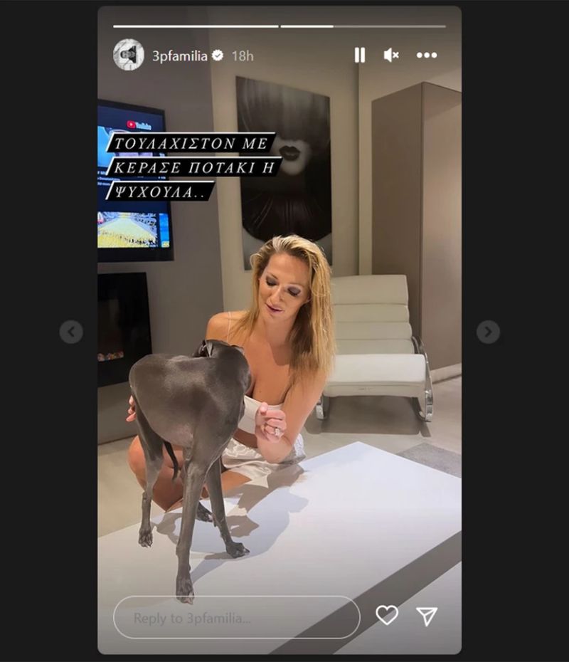 «880 ευρώ πιστόλι Κολωνάκι και στον Νικόλα, αν με ακούτε εκεί στην Αστυνομία» έγραψε ο Νίκος Παππάς δημοσιεύοντας φωτογραφία της η Maria Geleticova με τον σκύλο της. «Κέρασε ποτάκι τουλάχιστον η ψυχούλα» συμπλήρωσε με καυστικό ύφος ο διάσημος μπασκετμπολίστας του Παναθηναϊκού χωρίς όμως να δίνει περισσότερες λεπτομέρειες.