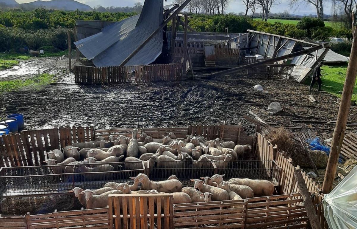 Οι ζημιές έχουν διαπιστωθεί στις εγκαταστάσεις ενώ χάθηκαν δέκα ζώα, καταστράφηκαν αρμεκτήρια και μπάλες τριφυλλιού.