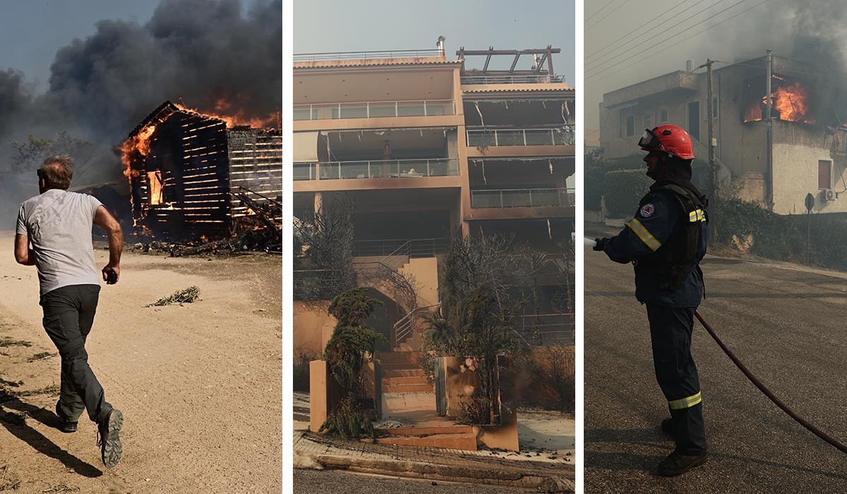 Σπίτια και αυτοκίνητα έχουν τυλιχθεί στις φλόγες, ενώ το πύρινο μέτωπο φτάνει πλέον στην παραλία Αναβύσσου.