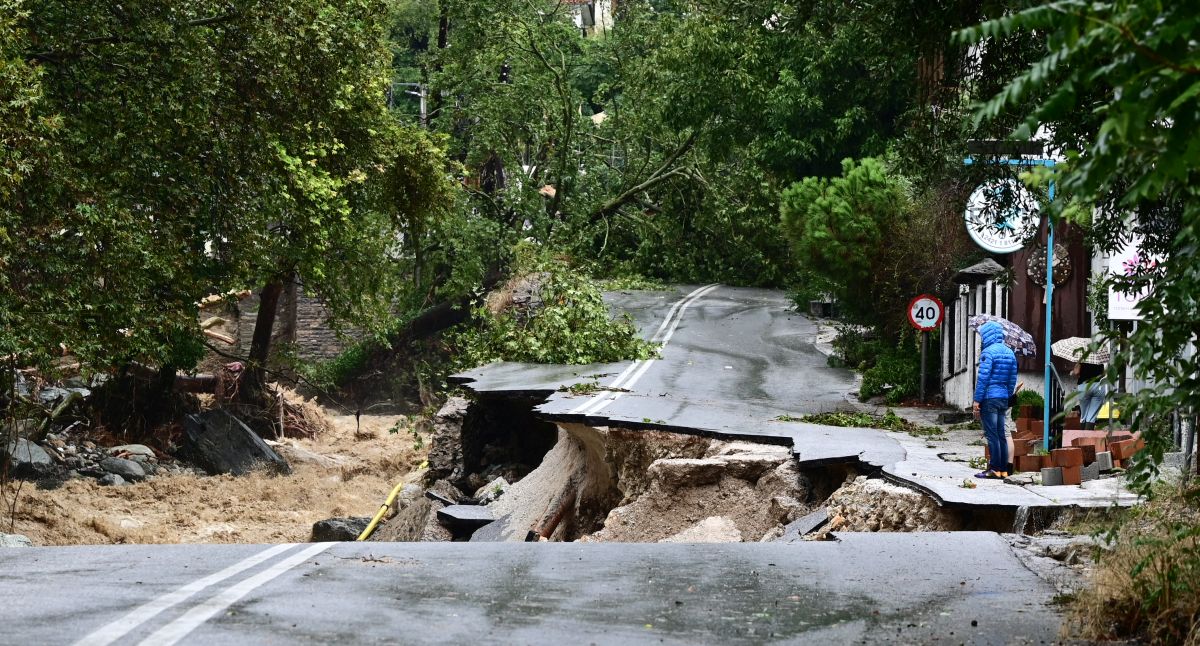 Κακοκαιρία Daniel: Μεγάλη επιχείρηση απεγκλωβισμού οδηγού από δρόμο που κατέρρευσε στο Βόλο