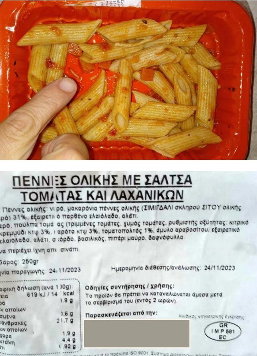 Σύμφωνα με το paramythia-online.gr, η μητέρα άναυδη εντόπισε σκουλήκια μέσα στο δοχείο με τα μακαρόνια που διανεμήθηκε στο παιδί της την περασμένη Παρασκευή και πρόκειται για παρασκευασμένο φαγητό.