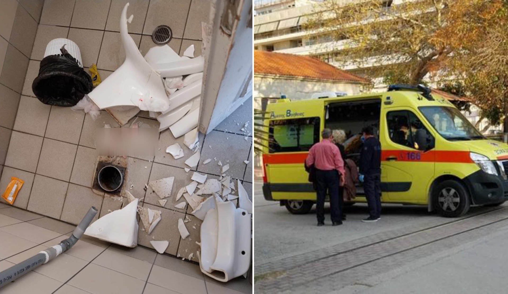 Όπως αναφέρει το myvolos.net, η λεκάνη έσπασε προκαλώντας τραύματα στην γυναίκα, που φώναζε για βοήθεια.