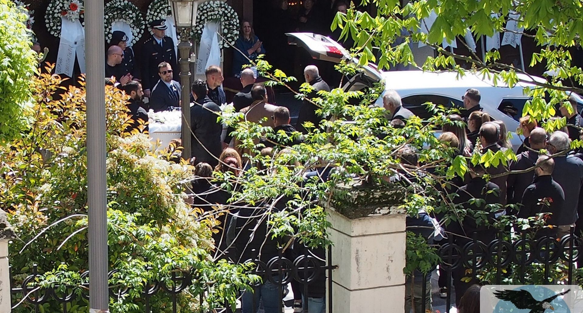 Η εκκλησία γέμισε με δεκάδες στεφάνια από τους αγαπημένους ανθρώπους του νεαρού αστυνομικού, αν και η επιθυμία της οικογένειας ήταν τα χρήματα να διατεθούν στο γηροκομείο Γρεβενών.
