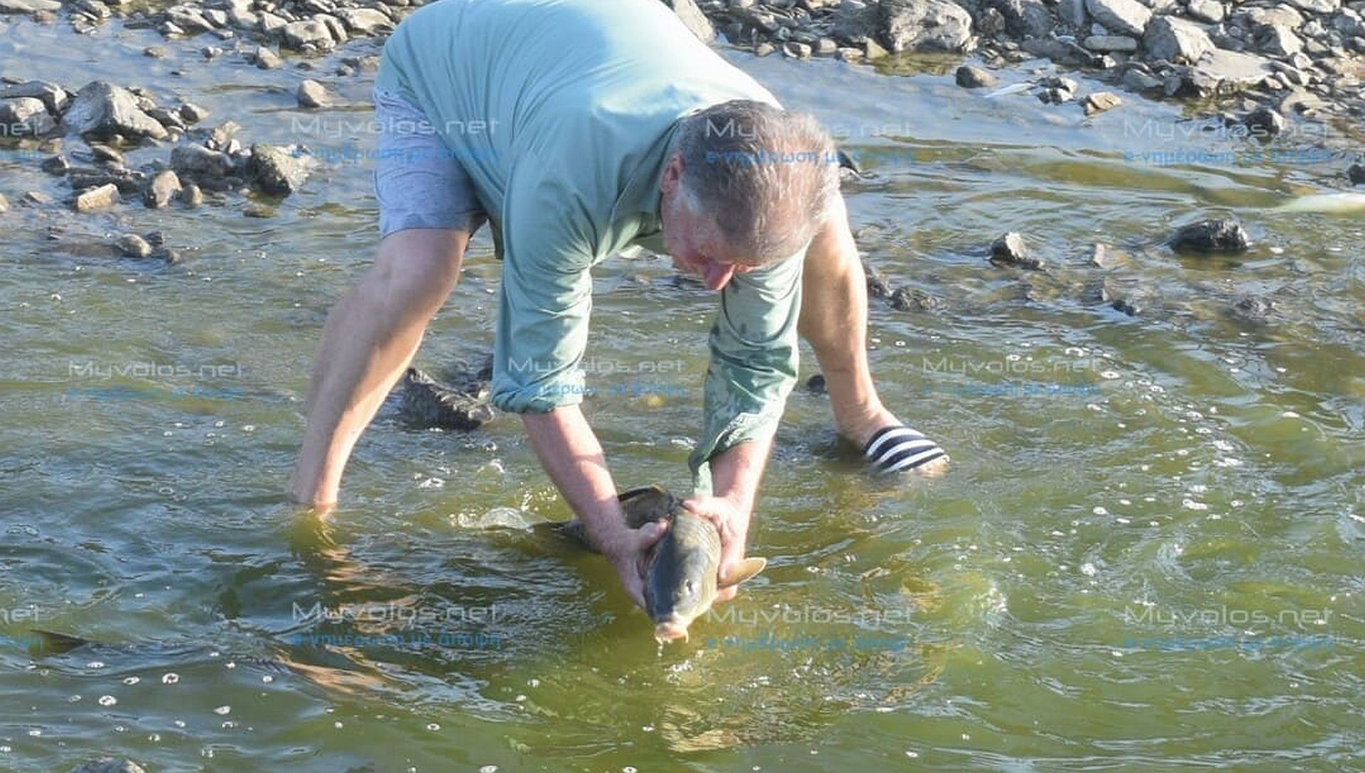 Ο κύριος Χρήστος μέσα στην κοίτη προσπαθούσε να σώσει όσα ψάρια μπορούσε, με τις χούφτες του. Τα μετέφερε σε σε δεξαμενή με γλυκό νερό που διέθεσε σε χώρο του, για να τα επιστρέψει στη συνέχεια στον ταμιευτήρα.