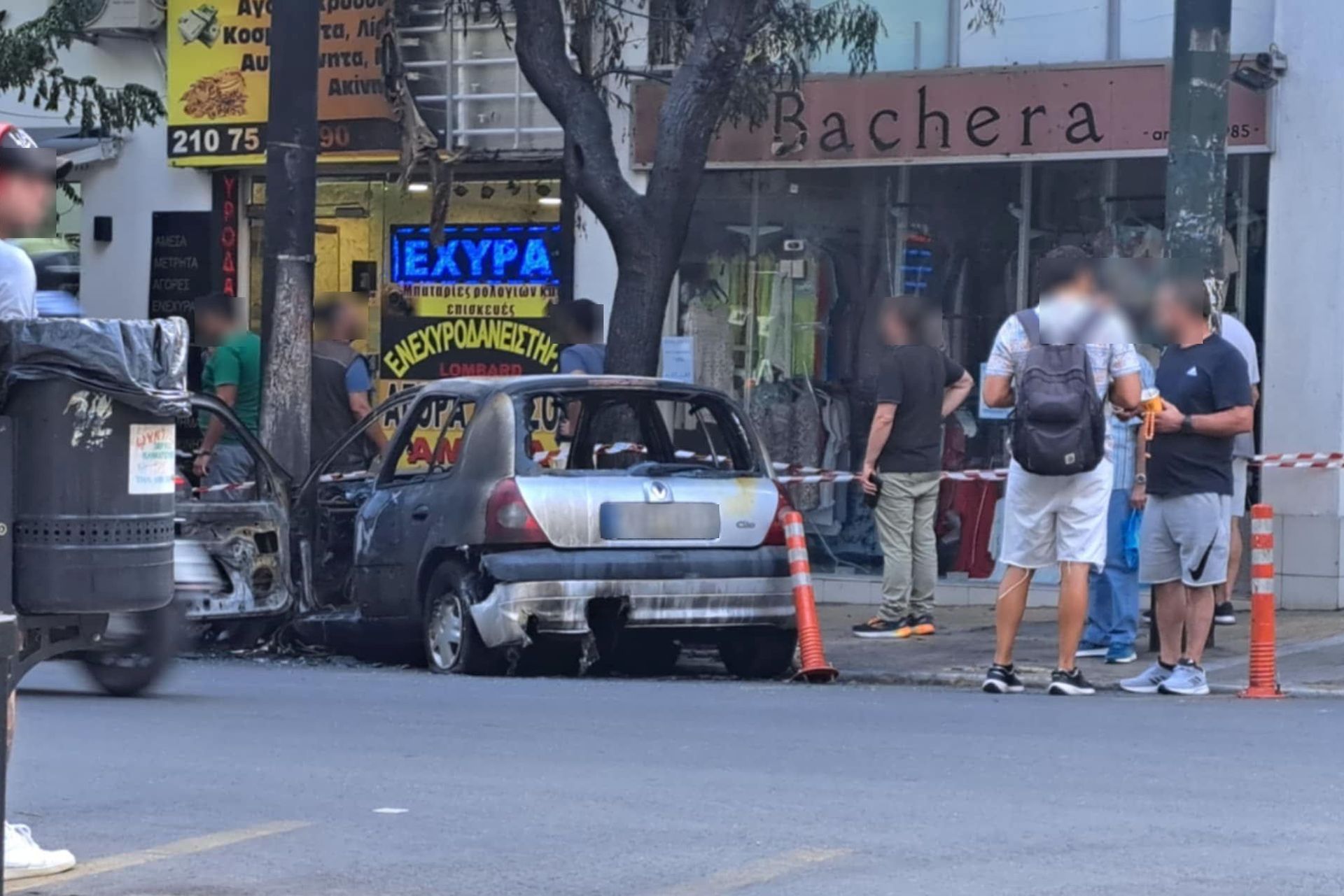 Τα ΙΧ έγιναν παρανάλωμα του πυρός στη συμβολή των οδών Φρύνης και Φιλολάου.