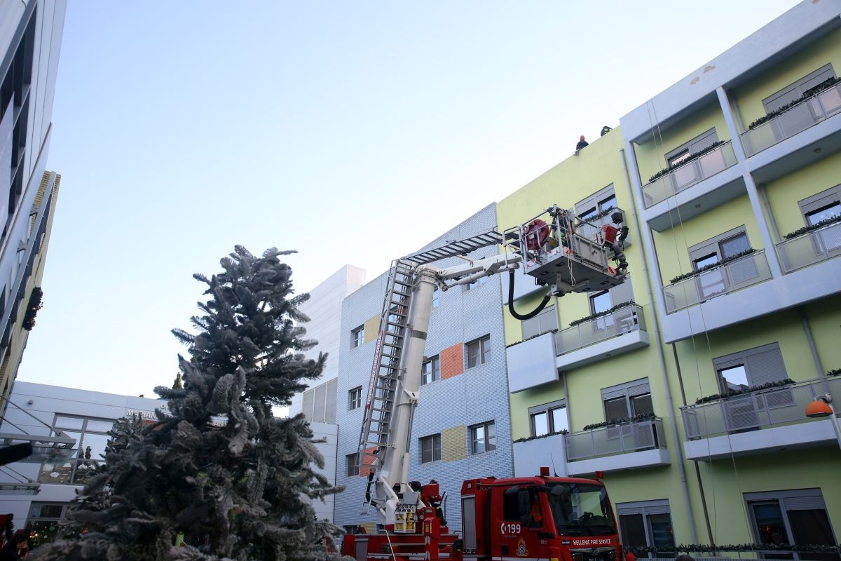 Φορώντας κόκκινα κράνη, σκούφους και κρεμασμένοι με σχοινιά από την ταράτσα της ογκολογικής μονάδας Παίδων Μαριάννα Β. Βαρδινογιάννη – Ελπίδα, πυροσβέστες της 1ης ΕΜΑΚ μοίρασαν δώρα και χαρά στα παιδιά κάθε ορόφου ενόψει Χριστουγέννων.