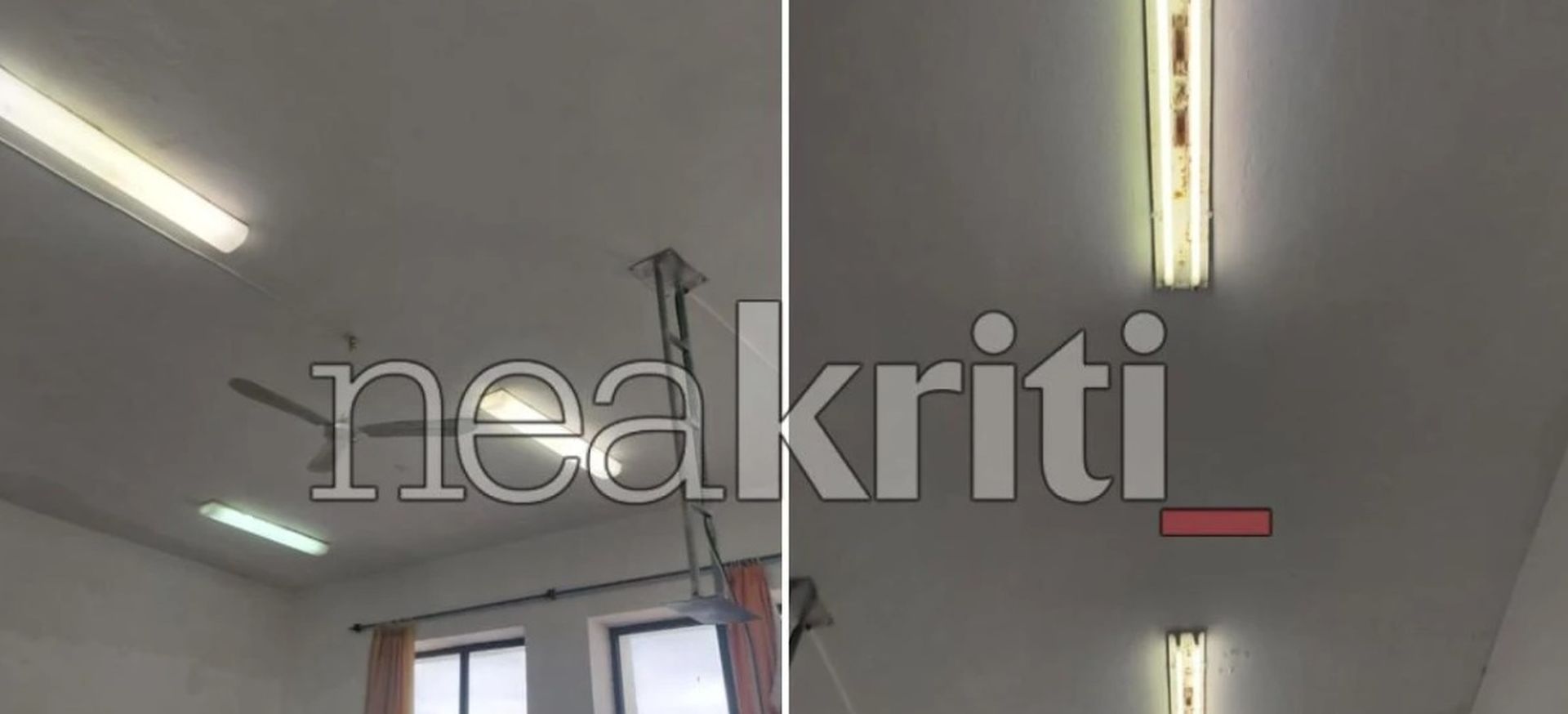 Πιο συγκεκριμένα, στο 2ο δημοτικό σχολείο στο Ρέθυμνο την περασμένη Πέμπτη έπεσε περίβλημα φωτιστικού την ώρα του μαθήματος και ενώ στην σχολική αίθουσα βρίσκονται οι μαθητές και ο εκπαιδευτικός!