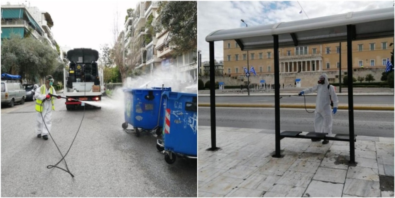 Η απολύμανση γίνεται σε όλη την διάρκεια της ημέρας με όλο το στόλο των οχημάτων και τους εργαζόμενους της διεύθυνσης καθαριότητας του Δήμου Αθηναίων, με χρήση 8.000 λίτρων απολυμαντικού ανά ημέρα, σε όλα τα δημοτικά διαμερίσματα του Δήμου.