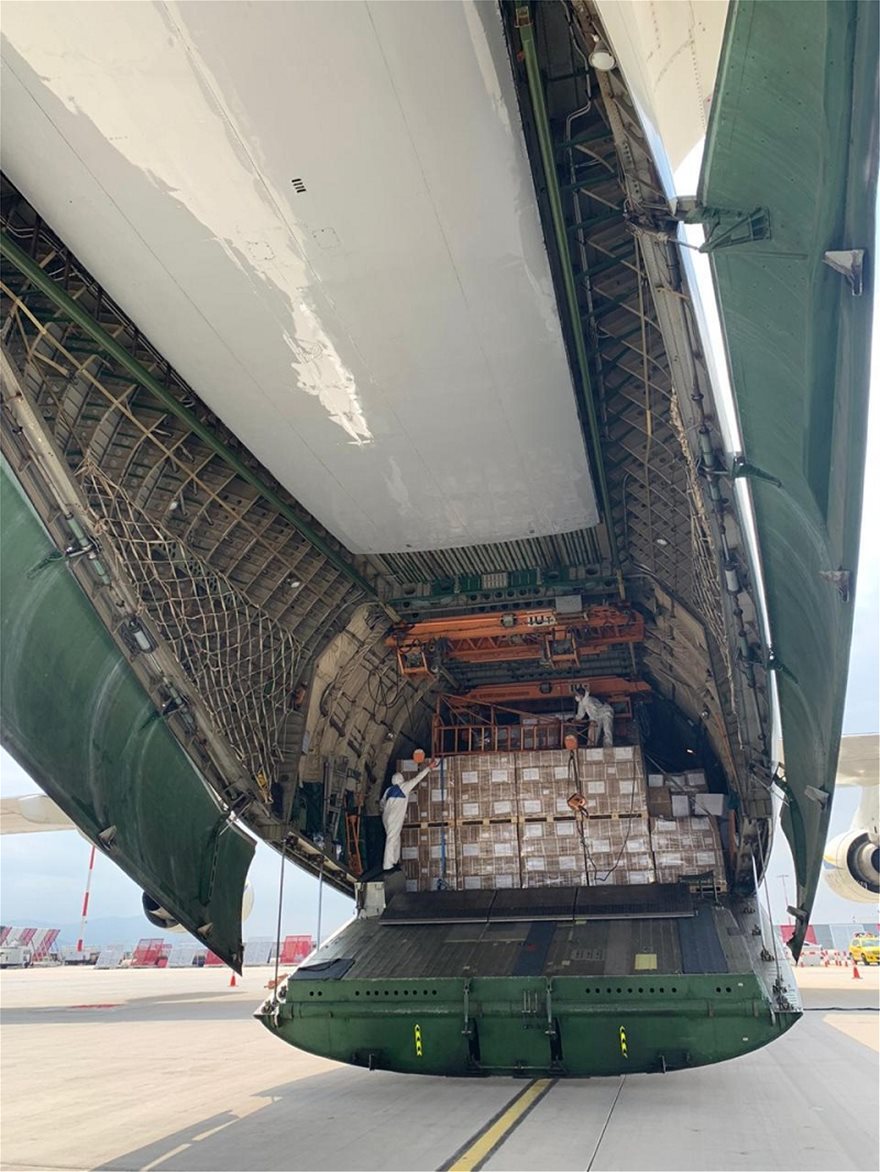 Το φορτίο με 80 τόνους υγειονομικού υλικού από την Κίνα, έφτασε πριν λίγη ώρα στο Αεροδρόμιο «Ελευθέριος Βενιζέλος» με αεροσκάφος Antonov.