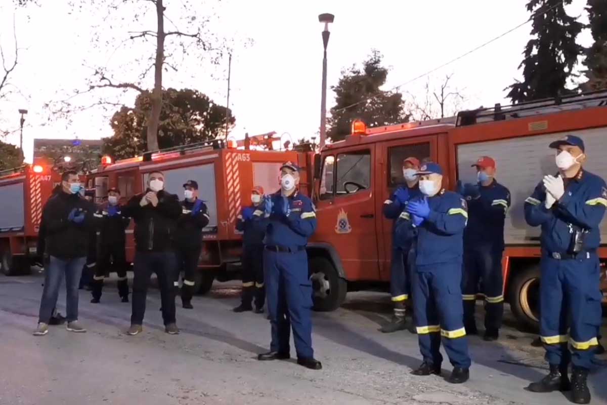 Με αναμμένους φάρους και σειρήνες οι πυροσβέστες χειροκρότησαν γιατρούς και νοσηλευτές (video)
