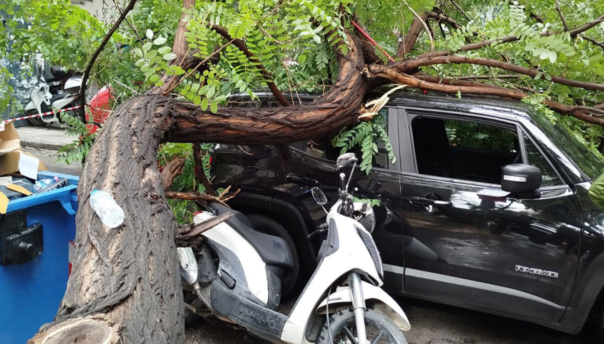 Την ίδια στιγμή, από το σημείο την στιγμή που έπεφτε το δέντρο περνούσε ένα μηχανάκι με τον 44χρονο οδηγό του να τραυματίζεται.