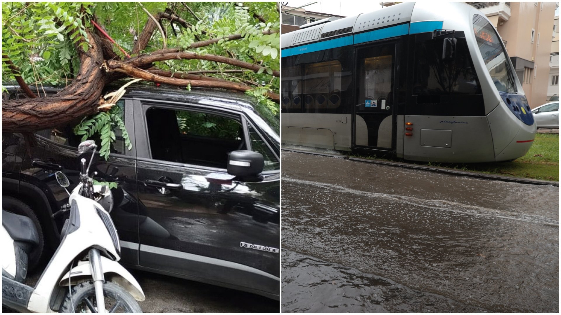 Την ίδια στιγμή εκτός λειτουργίας βγήκαν τέσσερις σταθμοί του τραμ καθώς πλημμύρισαν οι ράγες!