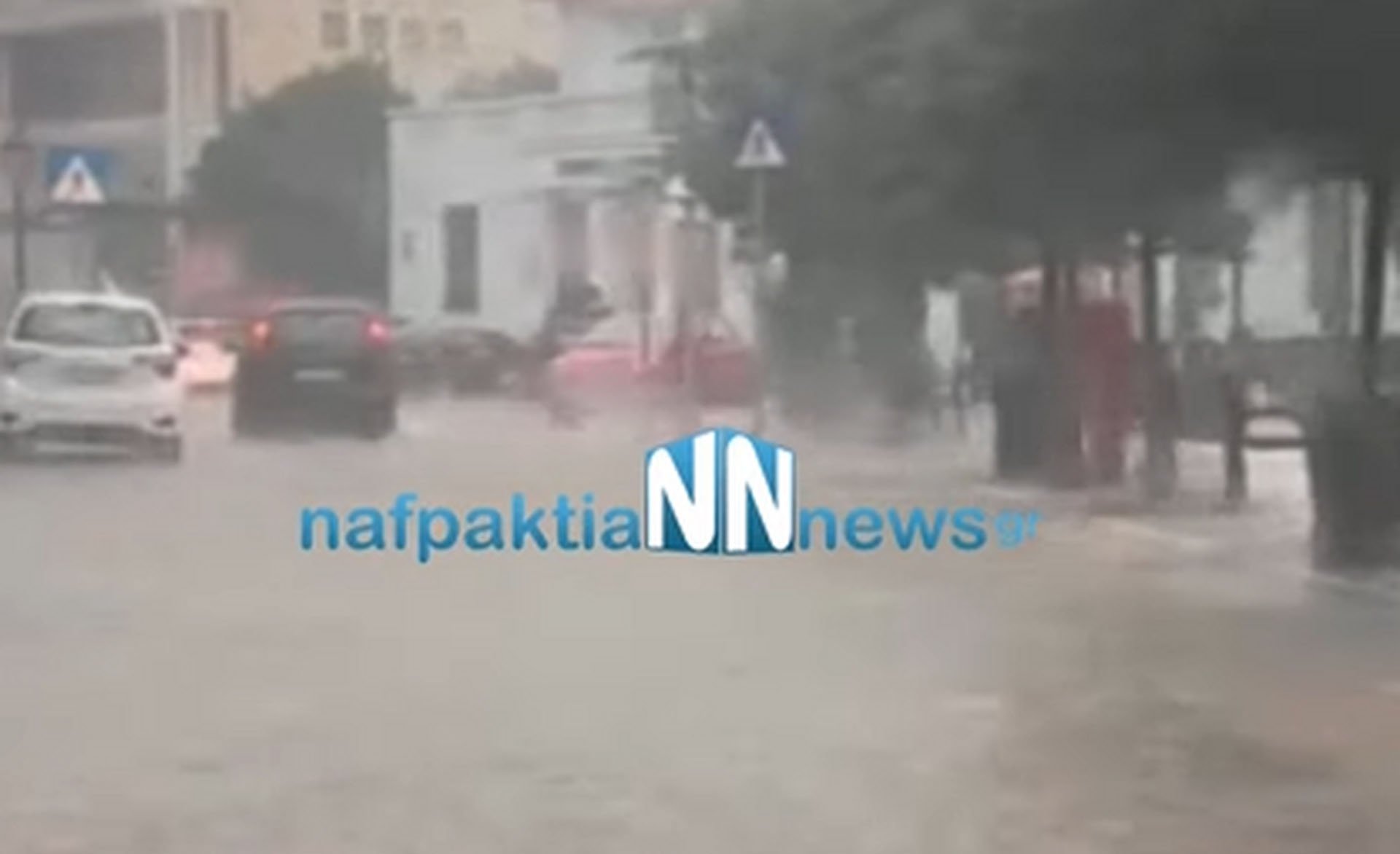 Η έντονη βροχόπτωση «χτύπησε» και στη Ναύπακτο, με τους δρόμους να μετατρέπονται σε ποτάμια.
