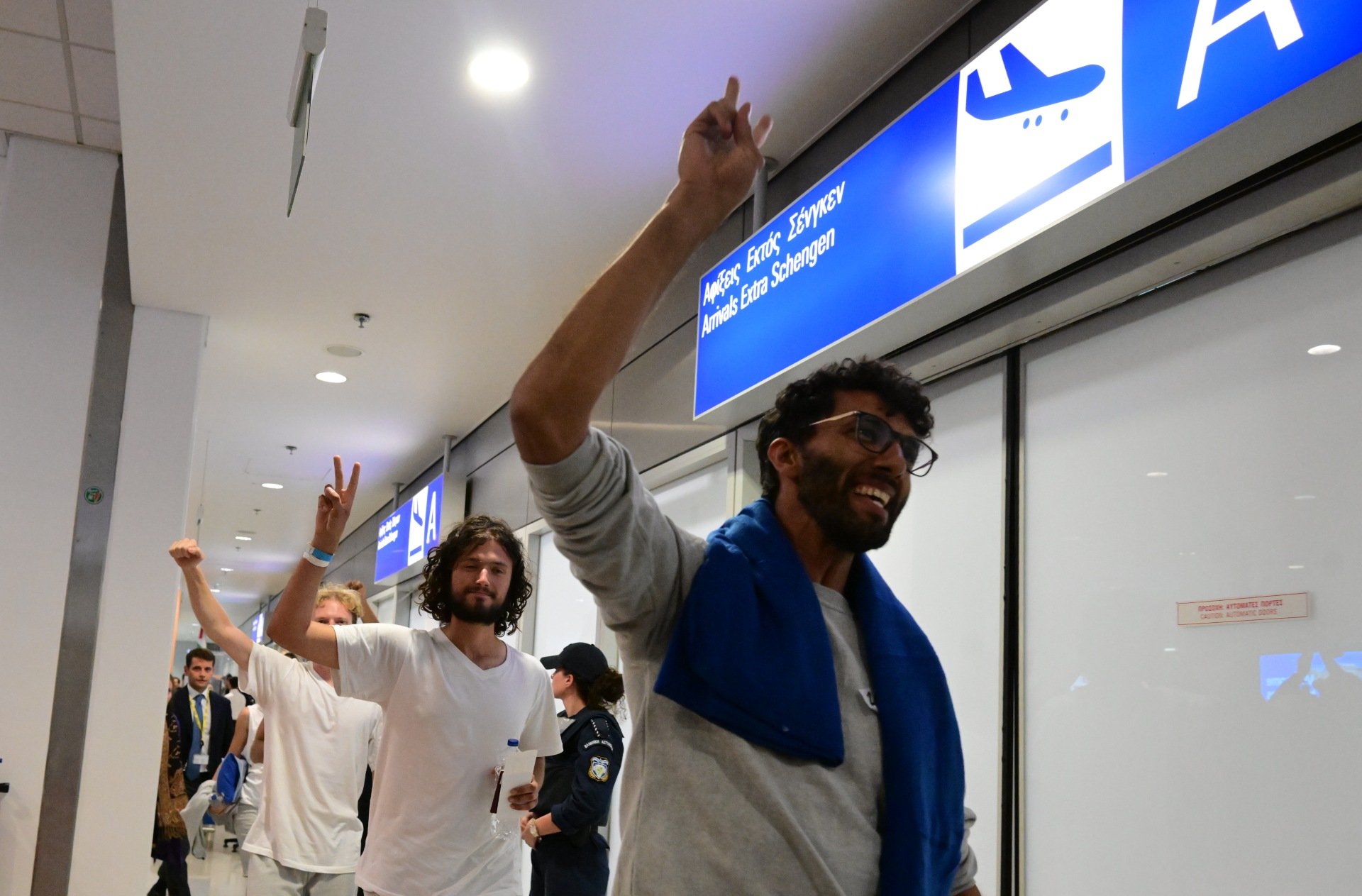Πάτησαν Αθήνα οι 27 Έλληνες ακτιβιστές που είχαν συλληφθεί από τον Ισραηλινό στρατό για τη συμμετοχή τους στην ανθρωπιστική αποστολή του Global Sumud Flotilla, με το αεροπλάνο που τούς μετέφερε να προσγειώνεται στο διεθνές αεροδρόμιο «Ελευθέριος Βενιζέλος» γύρω στις 5 το απόγευμα.