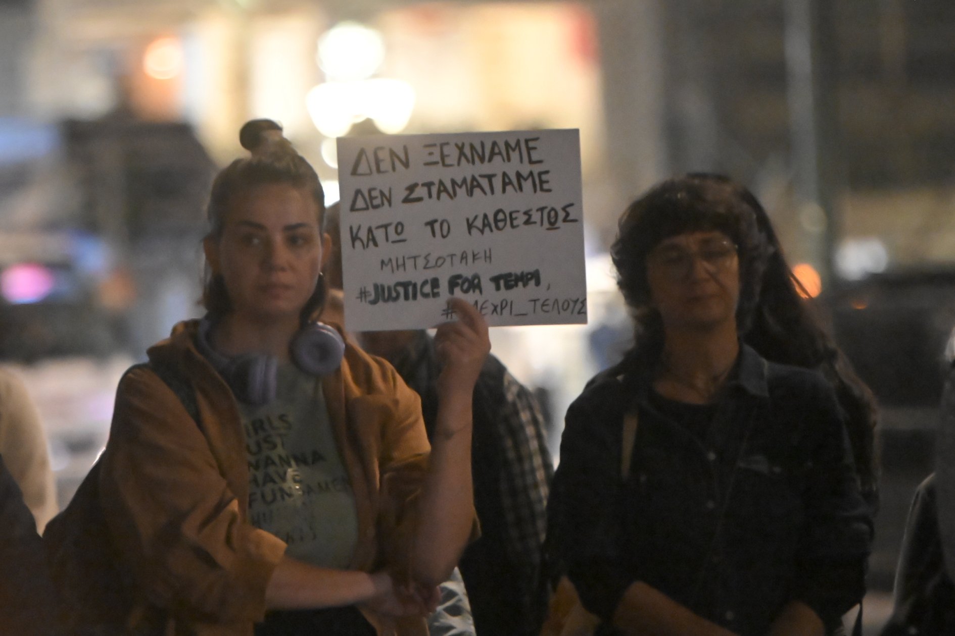 Στη συγκέντρωση συμμετέχουν ενεργοί πολίτες, συγγενείς των θυμάτων και επιζώντες της μοιραίας αμαξοστοιχίας, ορισμένοι εκ των οποίων κρατούν πλακάτ και φωνάζουν συνθήματα, ζητώντας να «μείνει ελεύθερη η πλατεία Συντάγματος, αλλά και να «ικανοποιηθούν άμεσα τα αιτήματα των συγγενών».