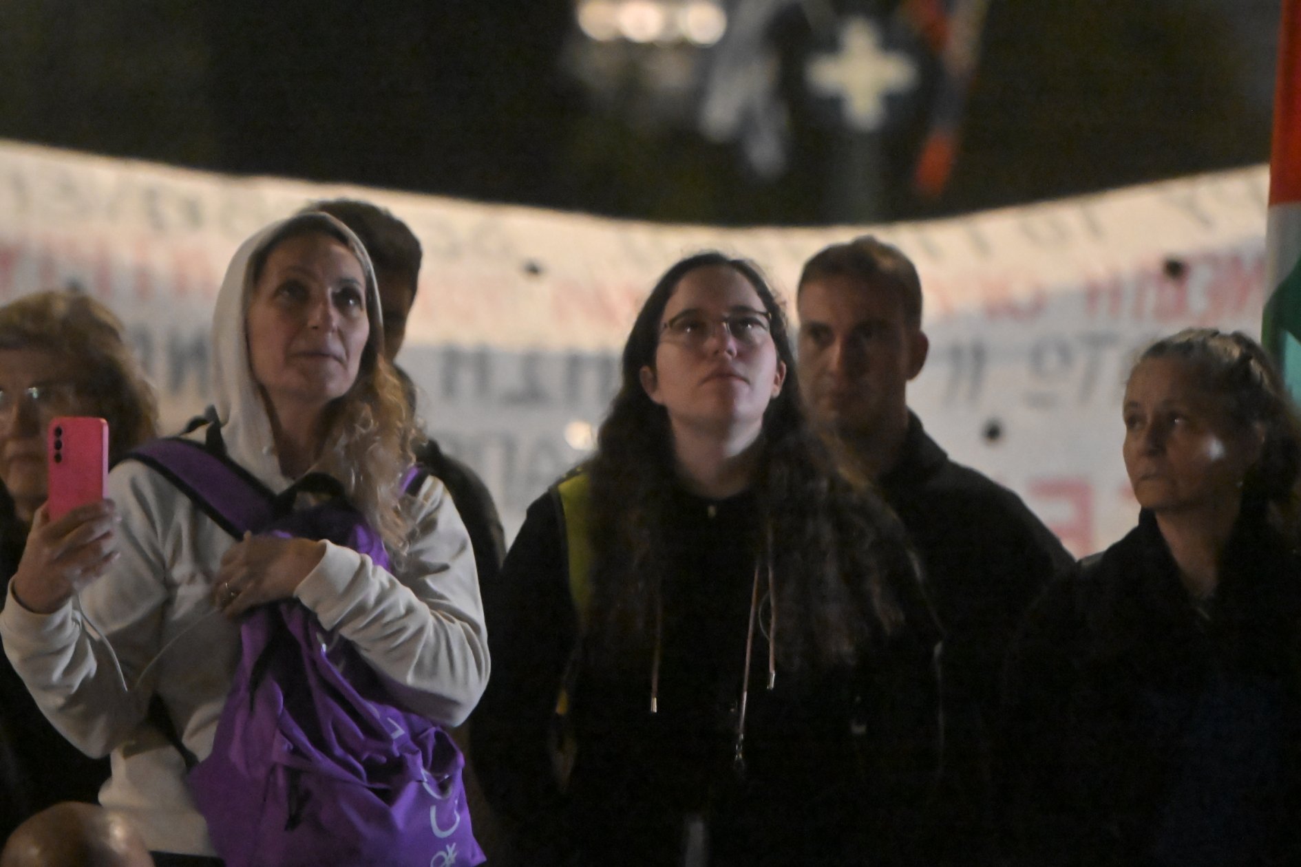 «Έχουμε σήμερα ένα κάλεσμα, σχετικά με όλο αυτό που συμβεί για το χώρο μπροστά από το μνημείο του Αγνώστου Στρατιώτη. Δεν θέλω να πω πολλά παιδιά. Λίγα, συνοπτικά, για να ακούει και να καταλαβαίνει ο κόσμος. Σήμερα πρέπει εδώ πέρα να γραφτεί και το 58ο θύμα, το οποίο είναι η Δημοκρατία. Δολοφονήσανε και τη Δημοκρατία. Βέβαια, μαζί με τα 57 παιδιά, το 58 είναι η δολοφονία της Δημοκρατίας. Έχουμε γράψει εδώ πέρα. Είναι ένας χώρος για να μπορέσουμε να αντιδράσουμε, να διαμαρτυρηθούμε κόσμια όσο μπορούμε, για τη δολοφονία αυτών των παιδιών. Κρατική δολοφονία, έτσι δεν είναι;», τόνισε ο Βασίλης Χατζηχαραλάμπους, ο οποίος έχασε τον γιο του στο έγκλημα των Τεμπών.