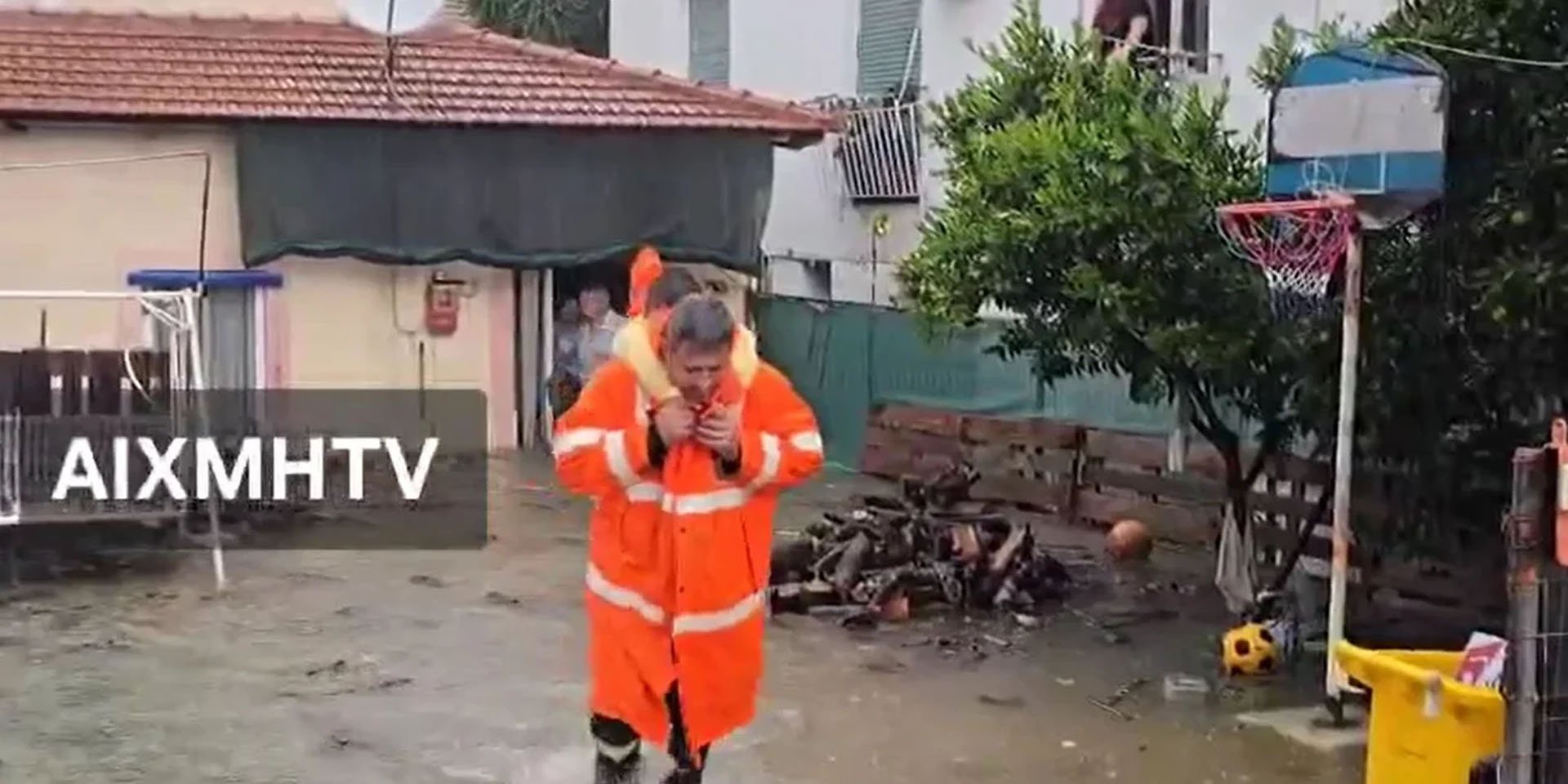 Σε ένα από τα σπίτια που κατάφεραν να προσεγγίσουν, απεγκλώβισαν ένα παιδί με έναν πυροσβέστη να το παίρνει στους ώμους του.