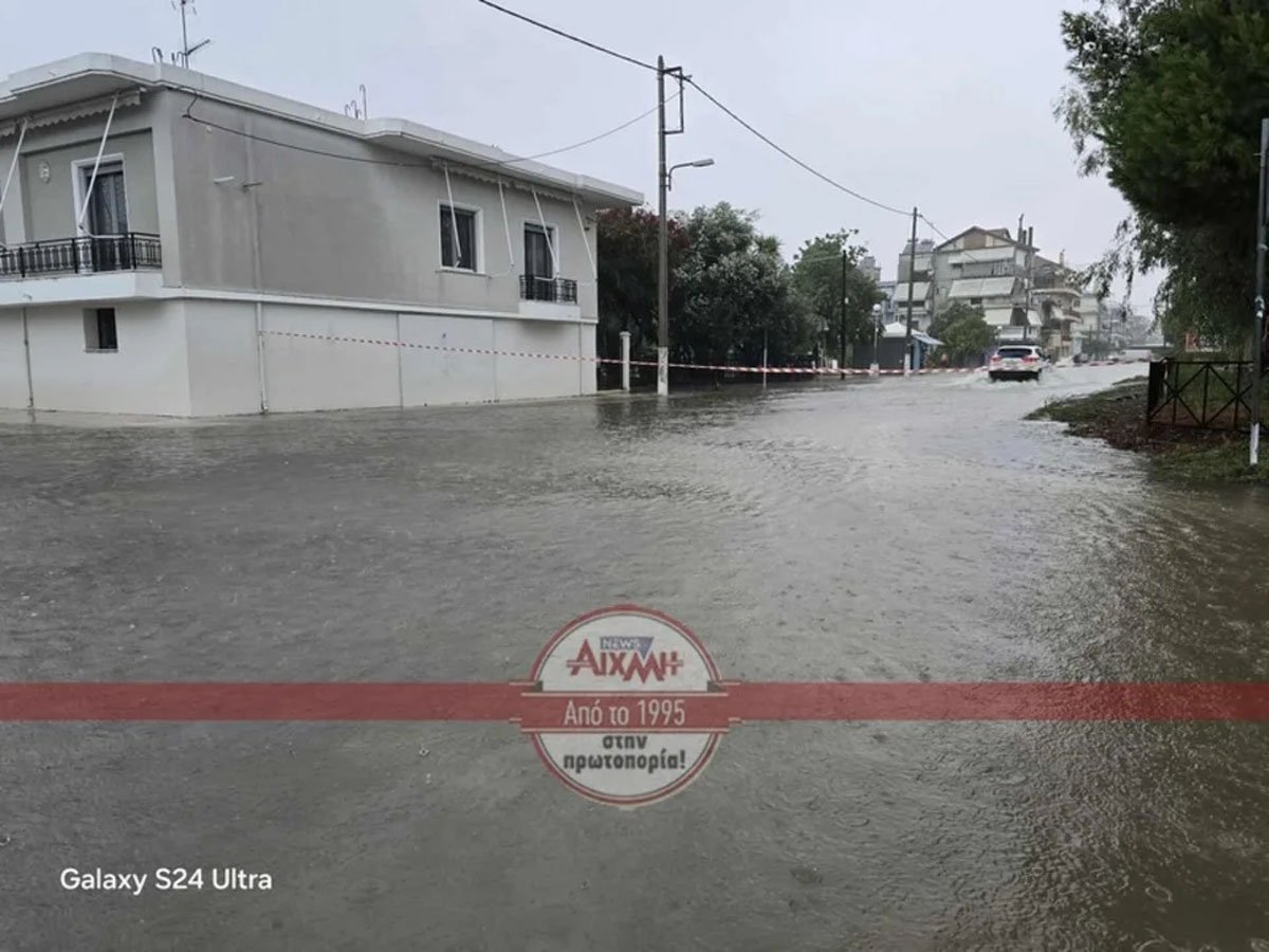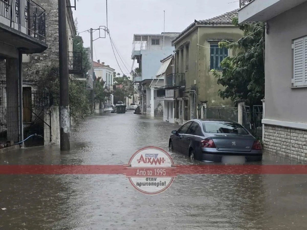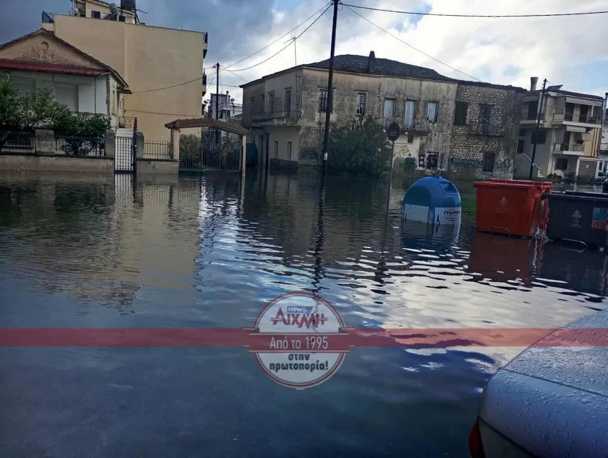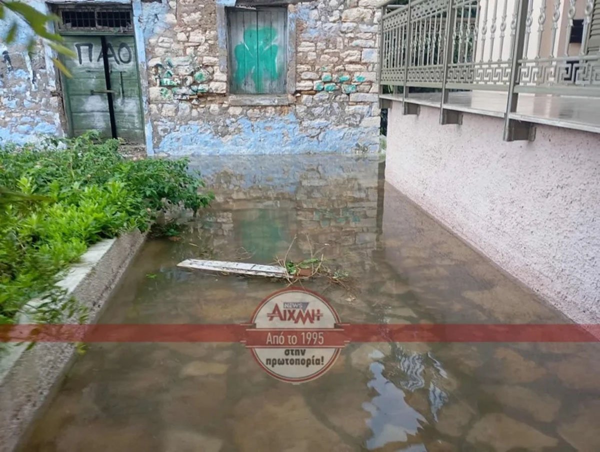 Έχουν πλημμυρίσει δρόμοι και κτίρια, ενώ ο δρόμος μπροστά από το Δημαρχείο έχει μετατραπεί σε… λίμνη και απαγορεύεται η διέλευση των οχημάτων.