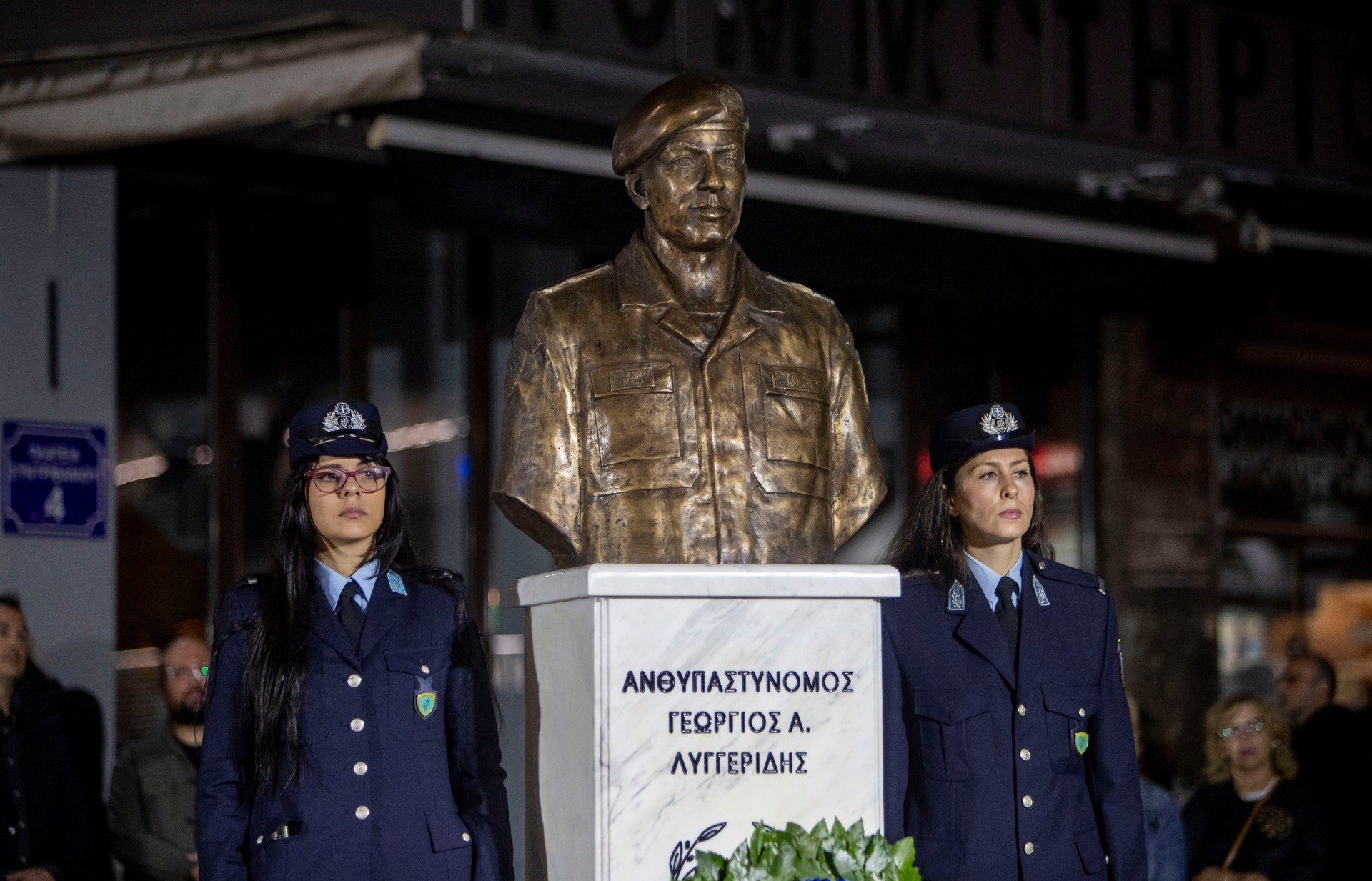 Τελετή αποκαλυπτηρίων της προτομής του αστυνομικού Γεωργίου Λυγγερίδη στο πάρκο που φέρει το όνομα του, στη Θεσσαλονίκη – Δευτέρα 27 Οκτωβρίου 2025 (ΒΑΣΙΛΗΣ ΒΕΡΒΕΡΙΔΗΣ/ΜΟΤΙΟΝΤΕΑΜ)