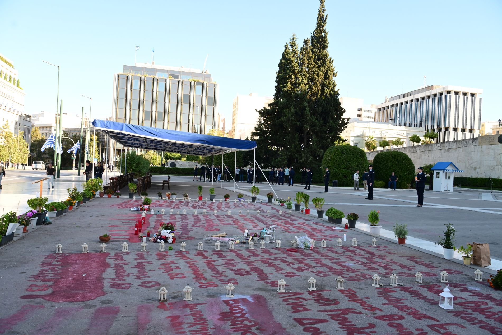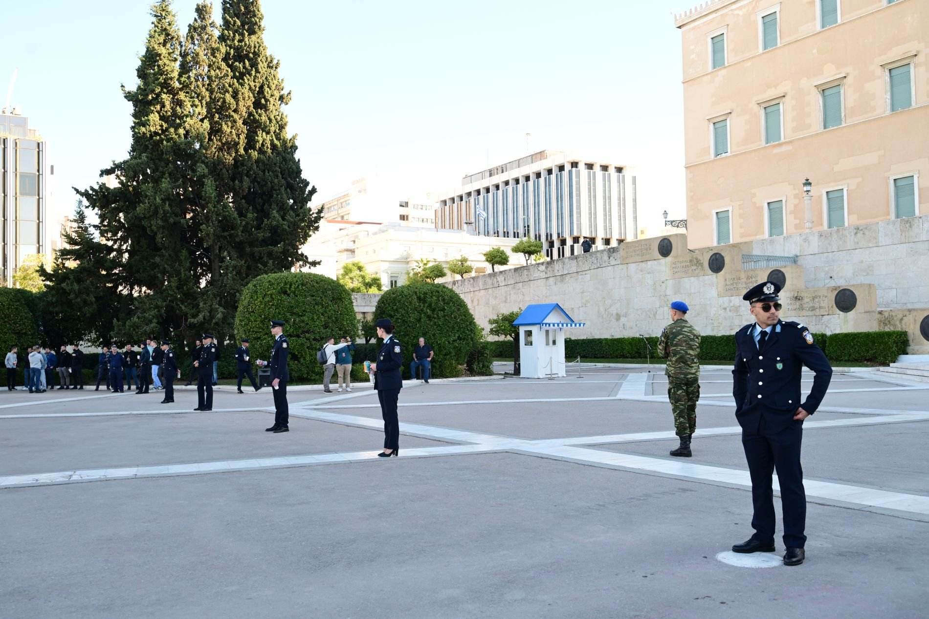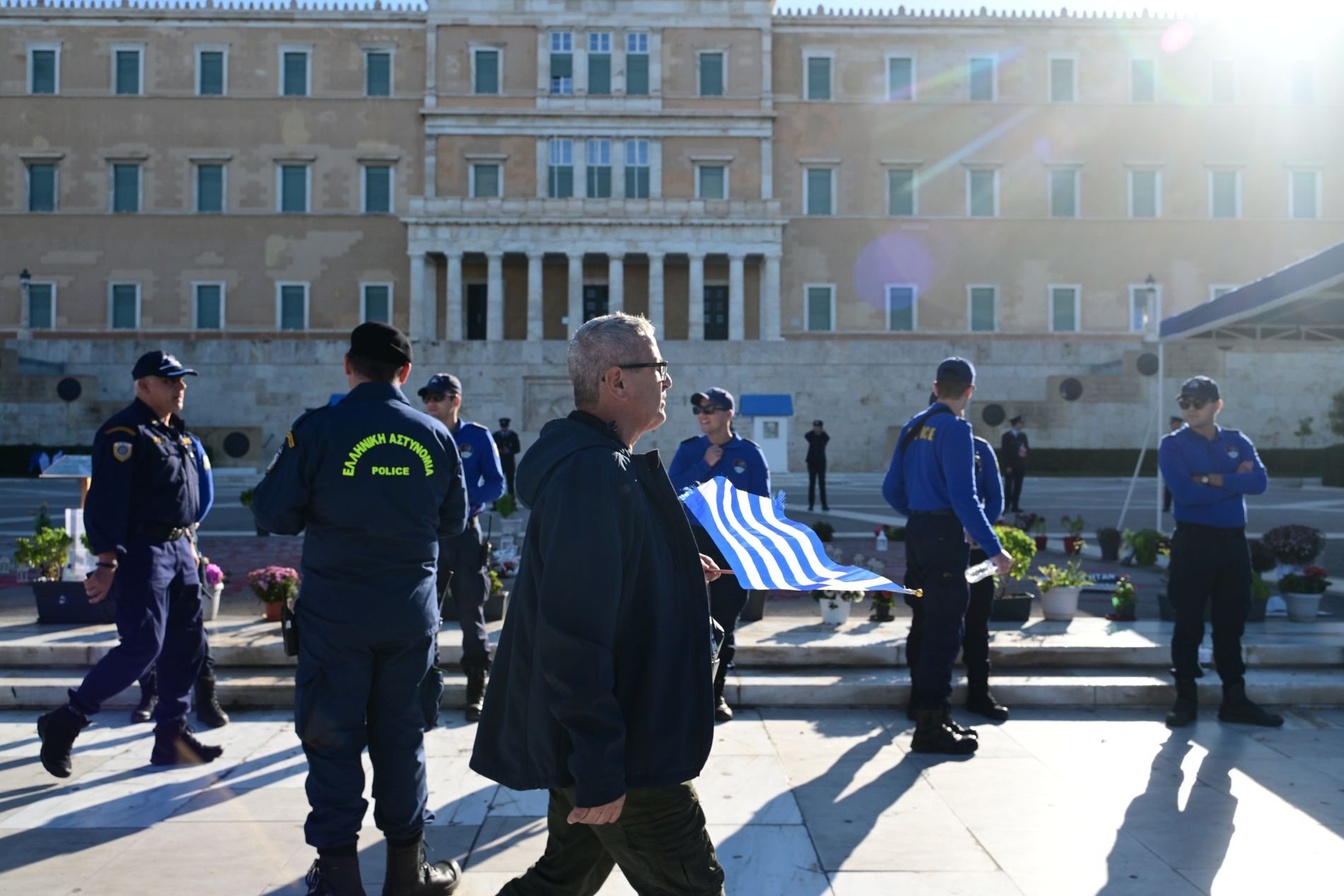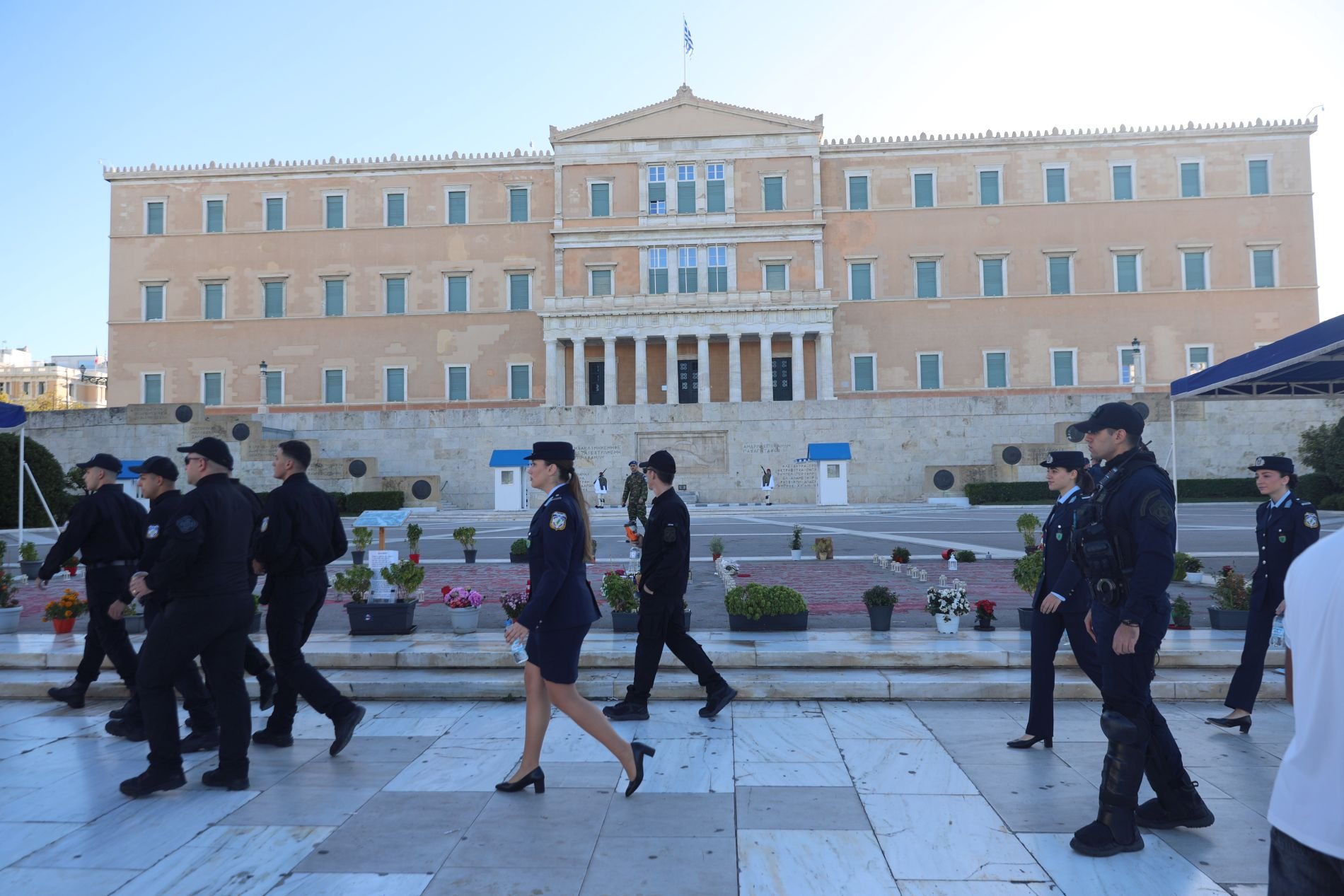 Η ισχυρή αστυνομική παρουσία στο Σύνταγμα και συγκεκριμένα στον περιβάλλοντα χώρο του Μνημείου του Αγνώστου Στρατιώτη, δεν πέρασε απαρατήρητη την 28η Οκτωβρίου.