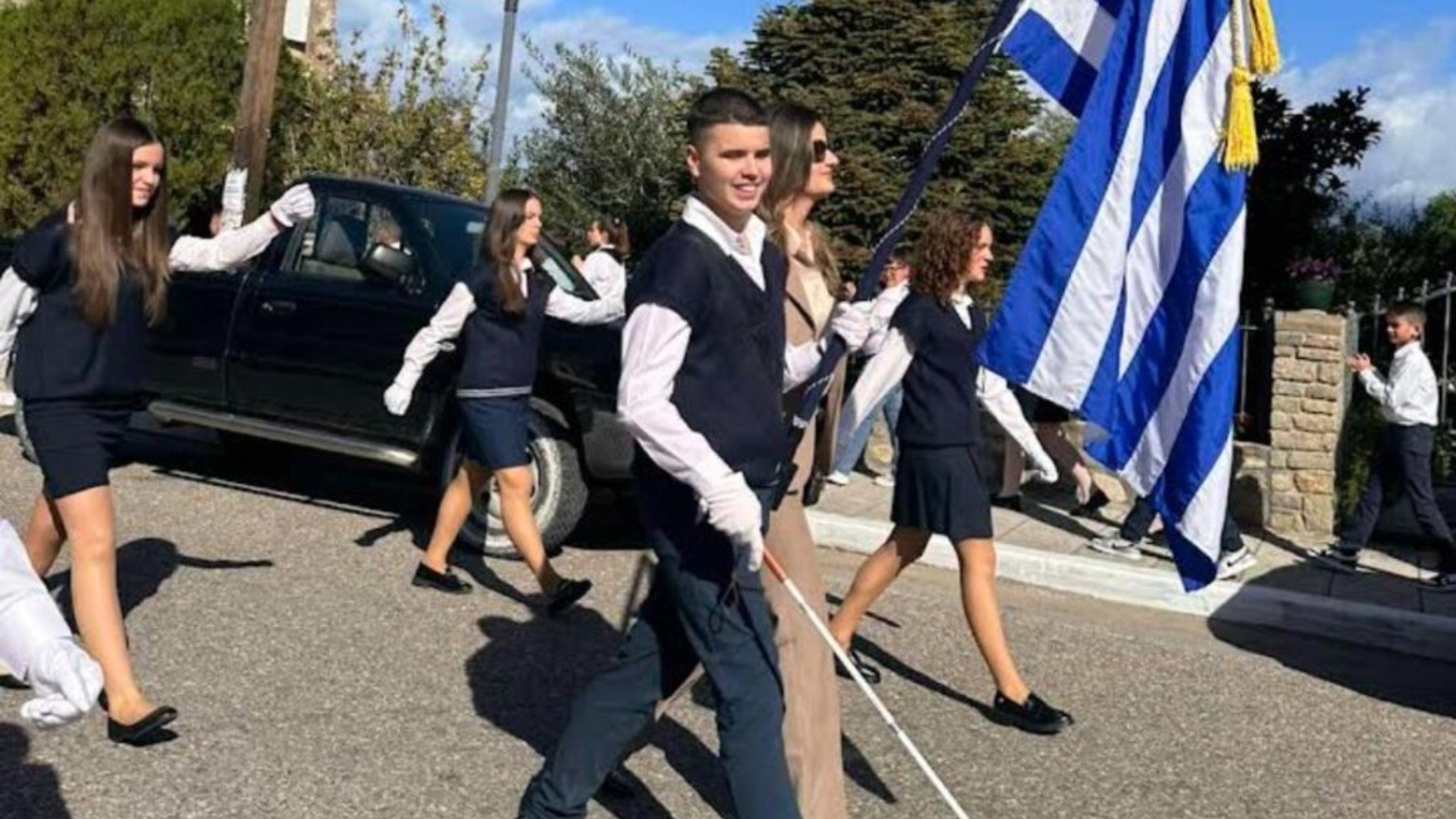 Ρίγη συγκίνησης και περηφάνιας σκόρπισε ο τυφλός μαθητής που παρέλασε ως σημαοφόρος στο Αγρίνιο για τον εορτασμό της 28ης Οκτωβρίου. Πρόκειται για τον Γιάννη, μαθητή της Γ’ τάξης του Γυμνασίου Γαβαλούς, με ολική απώλεια όρασης.