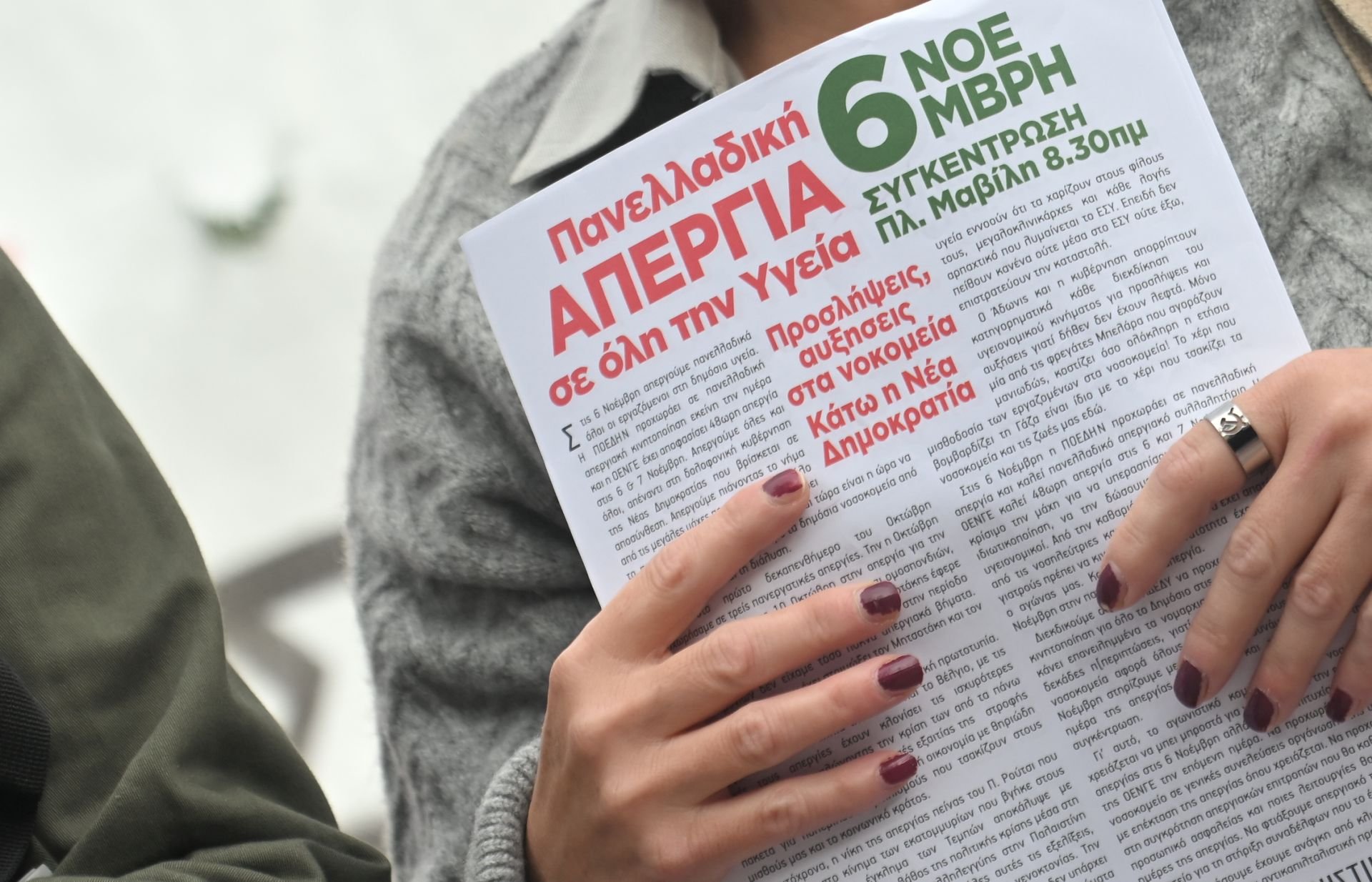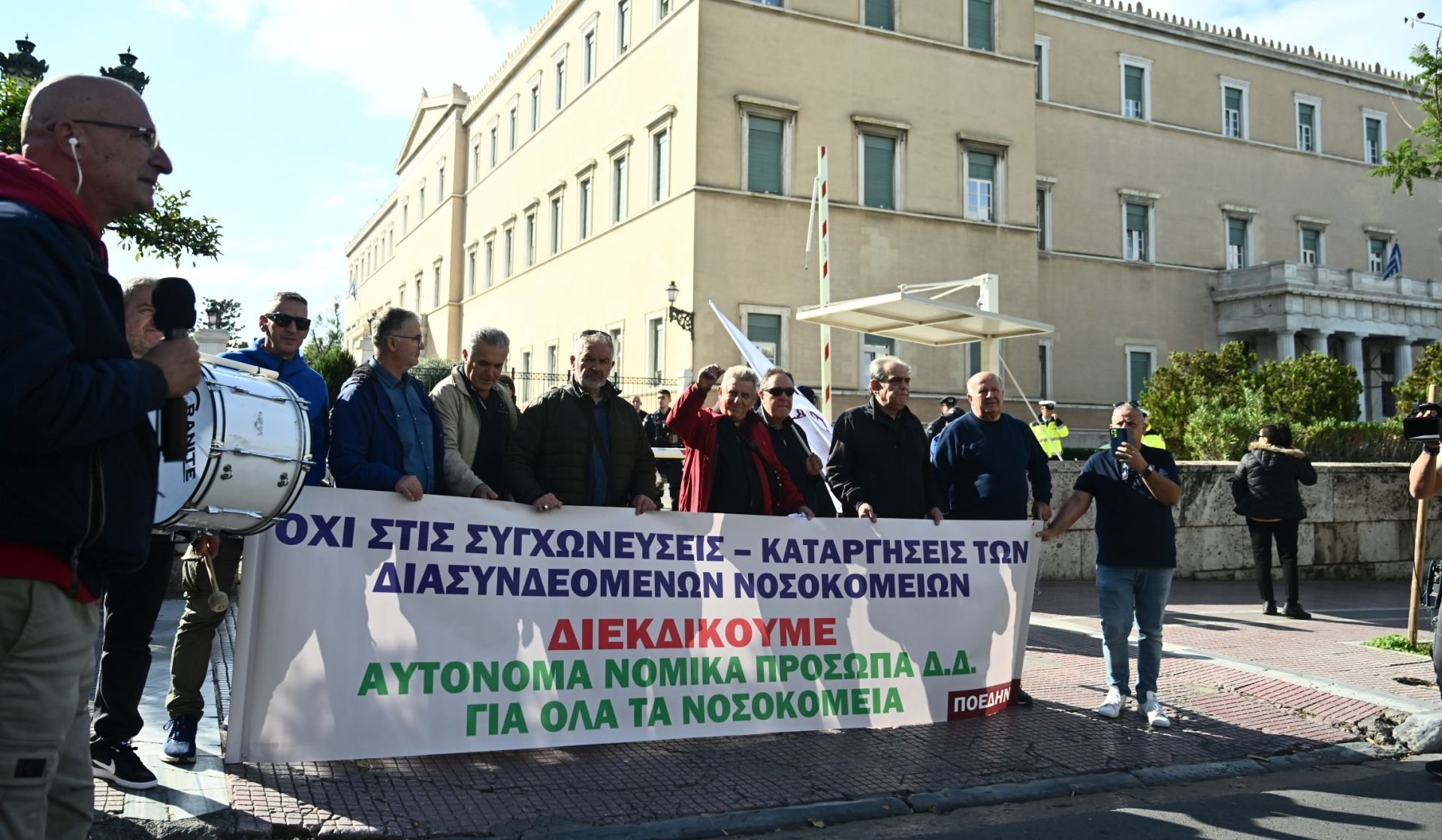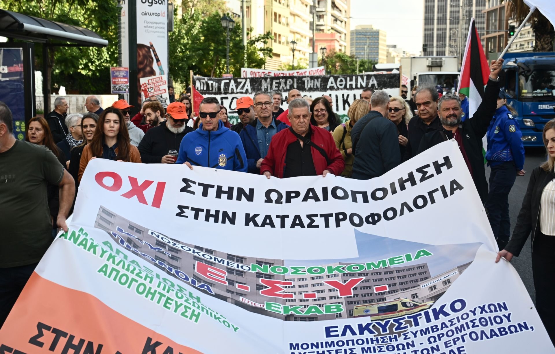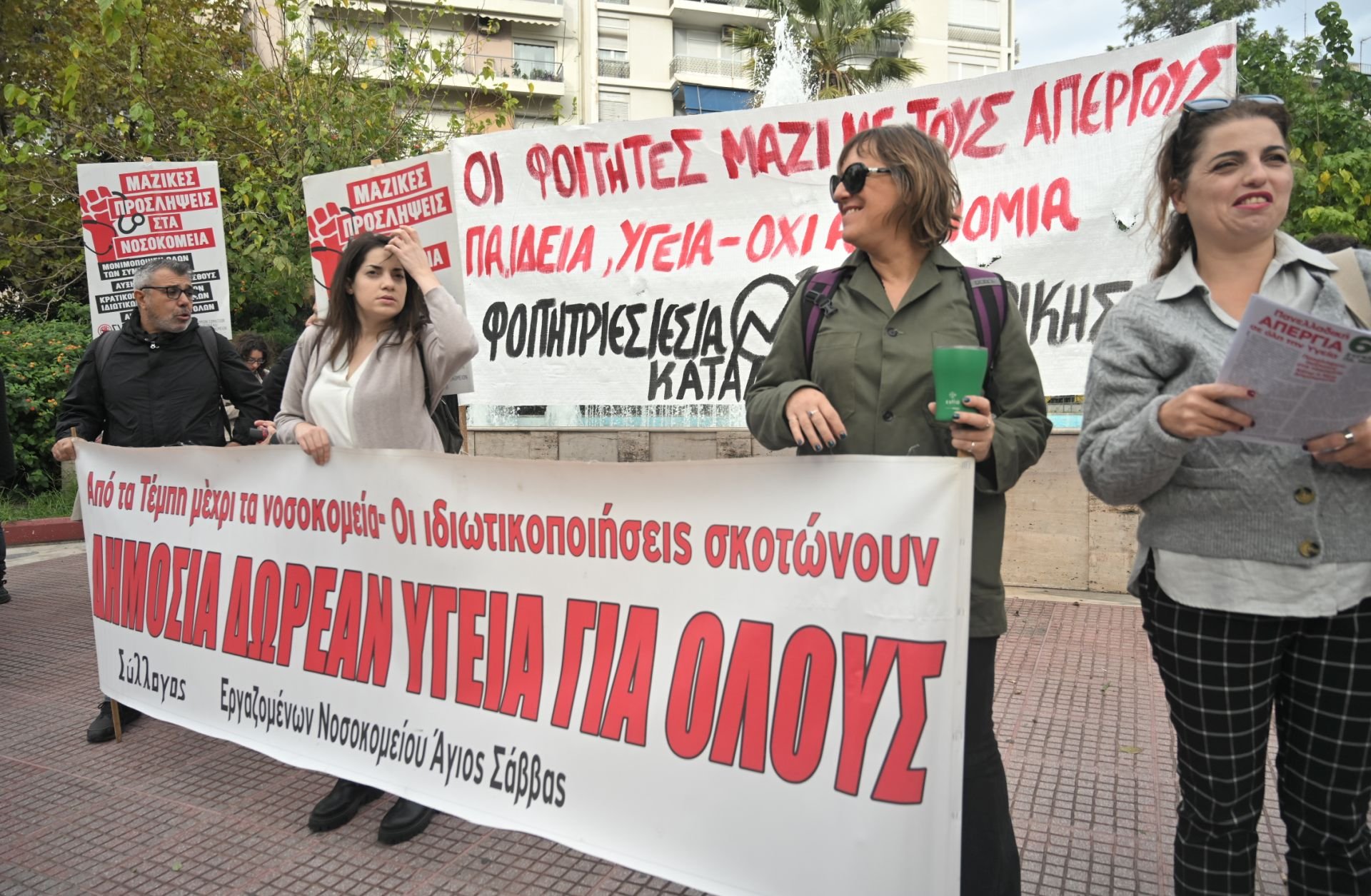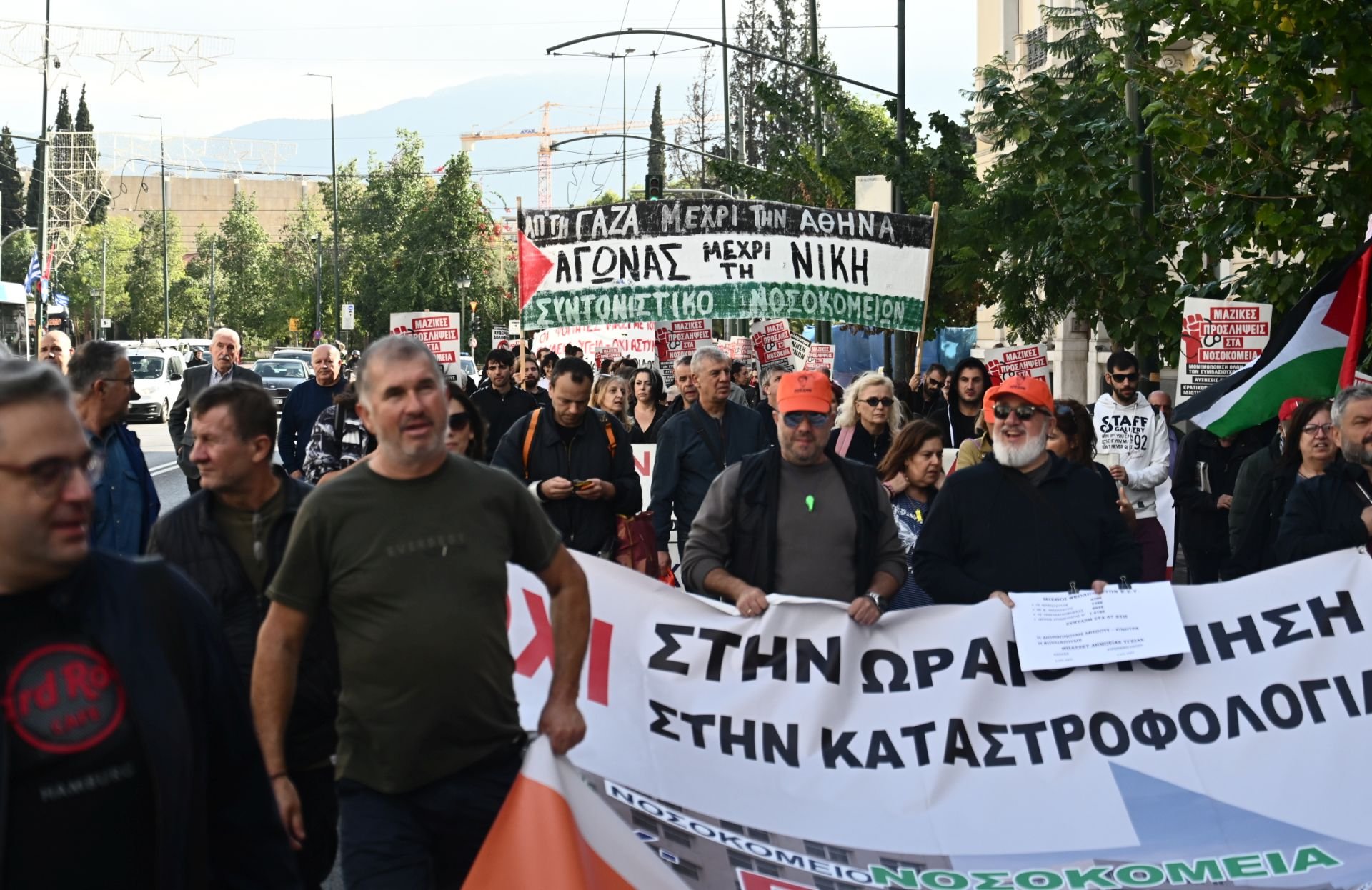 Την ίδια στιγμή στους δρόμους κατέβηκαν και οι εργαζόμενοι στα δημόσια νοσοκομεία με τους διαδηλωτές να πραγματοποιούν πορεία προς τη Βουλή. Την Παρασκευή 7 Νοεμβρίου, στις 12:00, έχει προγραμματιστεί νέα συγκέντρωση ειδικά για τους νοσοκομειακούς γιατρούς έξω από το Υπουργείο Υγείας.