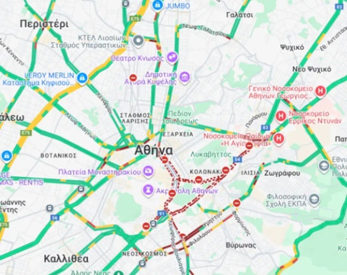 Αυξημένη είναι η κυκλοφορία στην Λεωφόρο Αλεξάνδρας και στα δύο ρεύματα, καθώς και στην Λεωφόρο Μεσογείων στο ρεύμα προς το κέντρο. Αντίστοιχα, κυκλοφοριακή επιβάρυνση καταγράφεται στην Κατεχάκη και σε δρόμους του Παγκρατίου.