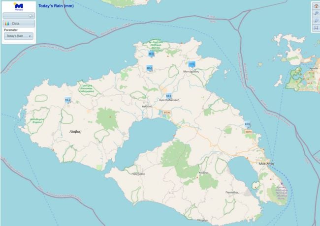 Κατά το επεισόδιο της 10ης–11ης Νοεμβρίου 2025, οι μετρήσεις του ΕΑΑ/meteo κατέγραψαν στο Μανταμάδο 117 mm στο Μόλυβο 98.8 mm στη Στύψη 88.2 mm στην Αγία Παρασκευή 56 mm στην Άντισσα της Λέσβου 49.2 mm και στη Θερμή της Λέσβου 43.6 mm.