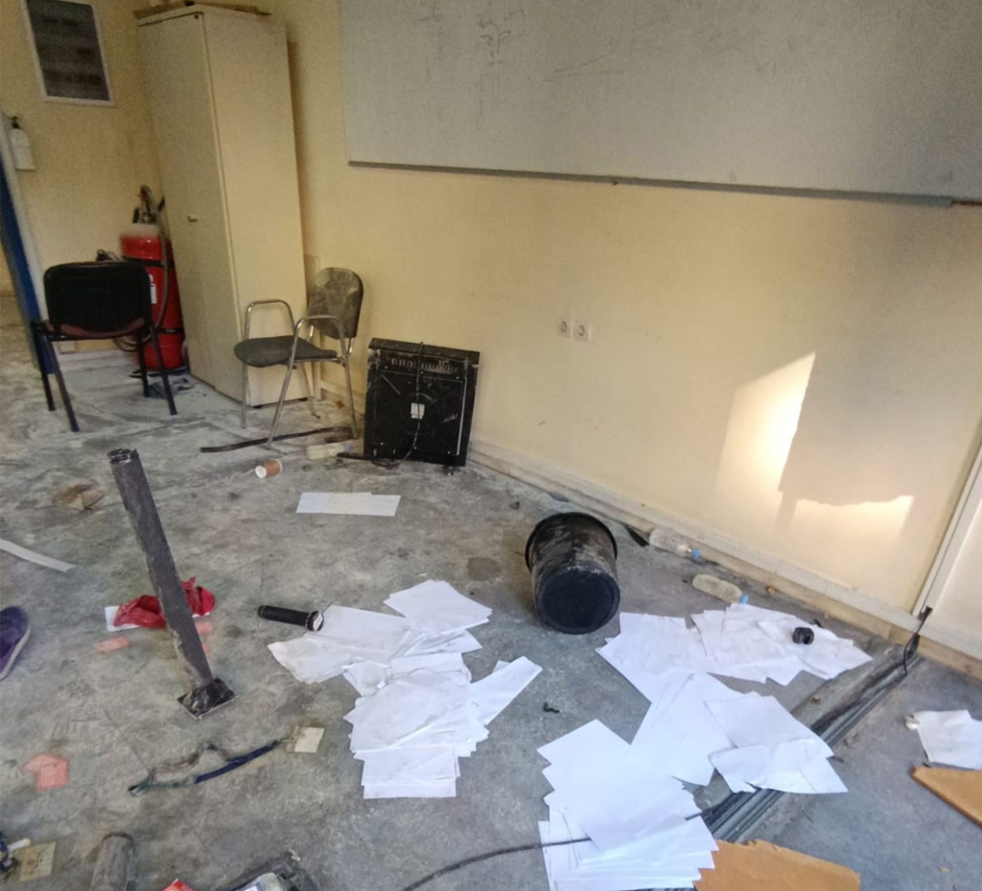 Παράλληλα, σημειώθηκαν εκτεταμένες υλικές ζημιές σε χώρους του πανεπιστημιακού ιδρύματος.