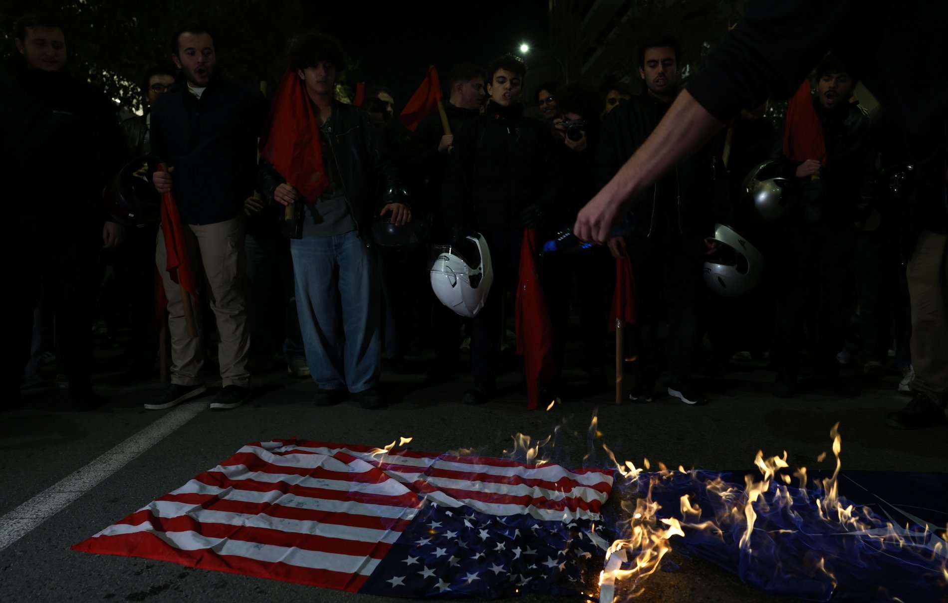 Εκεί όπου δεκάδες συμμετέχοντες στην πορεία έκαψαν σημαίες των ΗΠΑ, του ΝΑΤΟ, αλλά και του Ισραήλ, φωνάζοντας συνθήματα υπέρ των Παλαιστινίων.