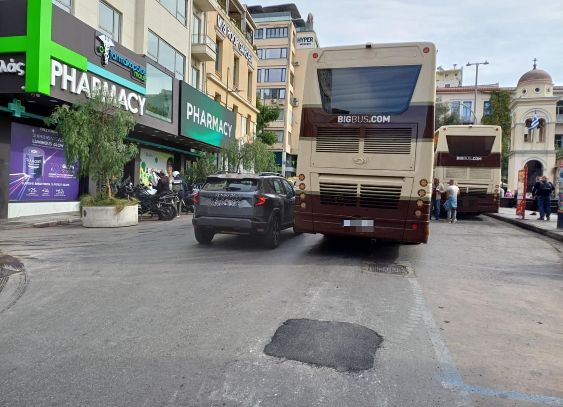 Αιτία είναι η συχνή στάθμευση των τουριστικών λεωφορείων διαφόρων εταιρειών στον πολυσύχναστο δρόμο στο πλαίσιο του δρομολογίου για την ξενάγηση των επισκεπτών που καταφτάνουν στην χώρα μας σε διάφορα σημεία της Αθήνας.