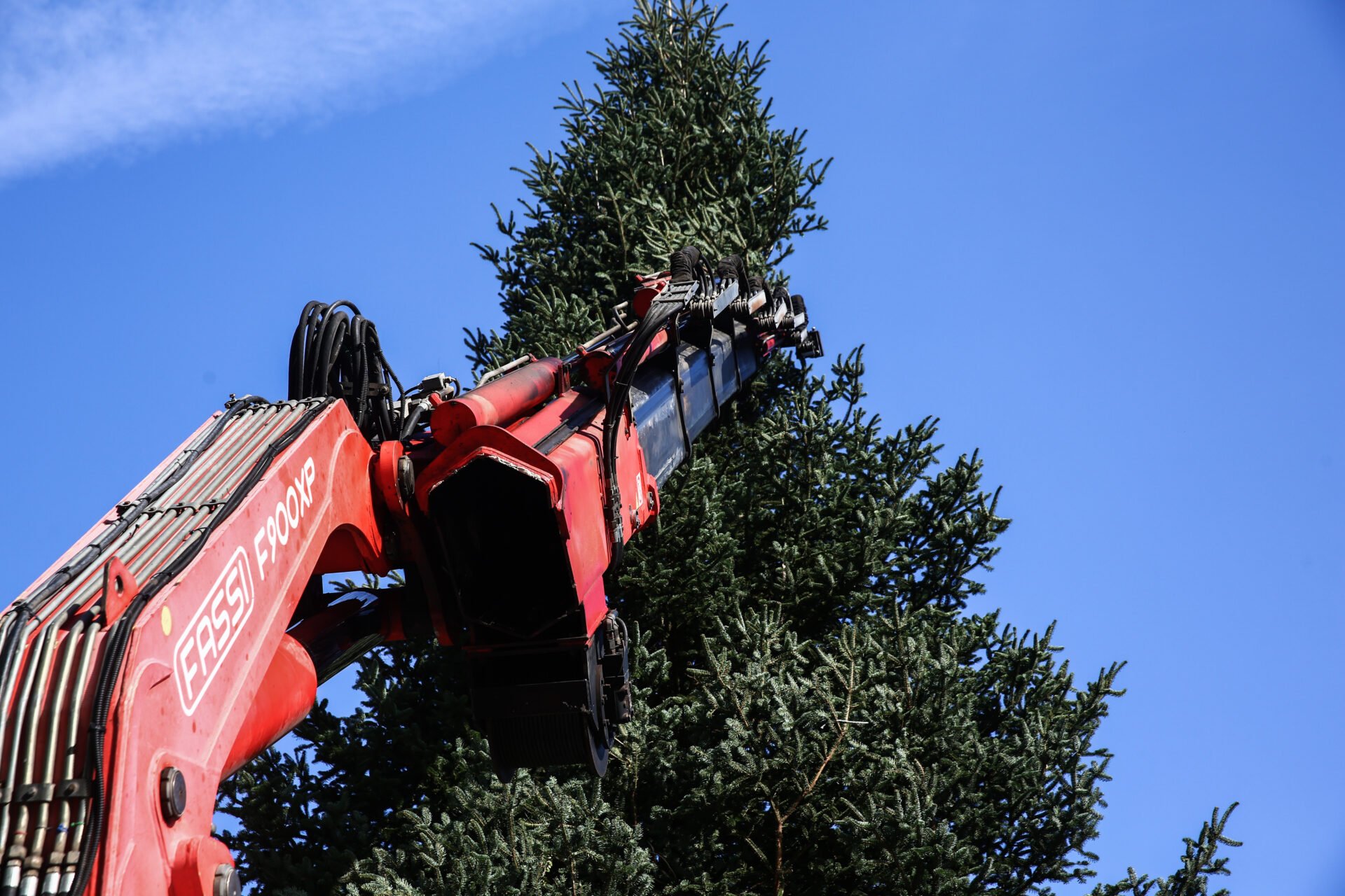 Το Χριστουγεννιάτικο δέντρο ύψους 19 μέτρων έφτασε από τη Βυτίνα και σχεδόν αμέσως μαγνήτισε τα βλέμματα των περαστικών.